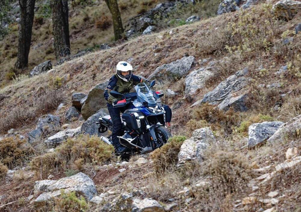 Come abbiamo già avuto modo di descrivervi parlando del configuratore della GS Adventure, si può scegliere fra diverse versioni o meglio allestimenti già preimpostati. Alla versione base in colorazione Racing Red si aggiungono la Triple Black, nella quale il nero la va naturalmente da padrone, la GS Trophy nella quale la vernice metallizzata Racing Blue è completata da vistose strisce in Light White e Racing Red e l'opzione 719 Karakorum nell'esclusivo colore verde Aurelius metallizzato opaco con linee dorate e particolari fresati. A livello di dotazione, riassumiamo soltanto alcune delle più importanti opzioni presenti: si va dal cruise control adattivo (che abbiamo provato e trovato molto funzionale), il rear end collision warning (ovvero il monitoraggio dell'angolo cieco per il quale, in realtà, vorremmo avere un avviso luminoso più evidente) e l'hill start control (che consente di fermarsi nel mezzo di una salita e mantenere la moto bloccata senza necessità di tenere i freni). A questi si aggiunge un'altro optional che abbiamo trovato intrigante: i nuovi cerchi forgiati in lega e pensati specificatamente per l'off road sono una bella alternativa al sempreverde cerchio a raggi.
