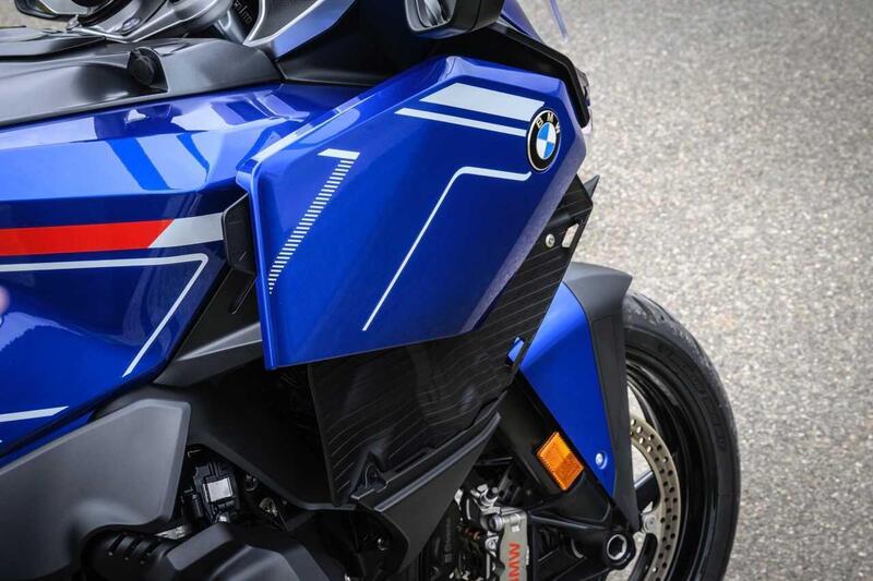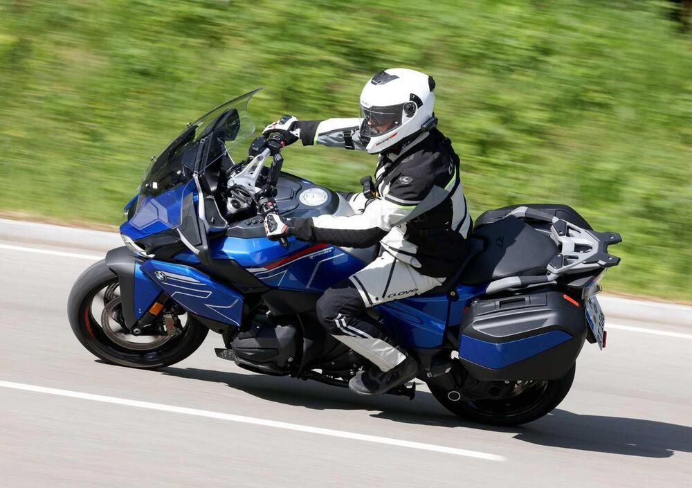 Osservandola dal vivo la nuova RT conferma le descrizioni della Casa: ammicca decisamente alla sportività. Ancor di più nell'esemplare provato fornitoci da BMW ovvero quello in allestimento Impulse che ha una colorazione blu elettrica e grafiche che si discostano dalla tradizione classica della RT. Tutta la parte anteriore è più compatta e "schiacciata" verso la forcella, i fari LED disegnano uno sguardo più determinato, grintoso e l'insieme trasmette dinamismo prima ancora di accendere il motore. Eppure, la sostanza protettiva rimane intatta: parabrezza regolabile elettricamente, deflettori aerodinamici e quella sensazione di abitacolo protetto che rende ogni chilometro un piacere.