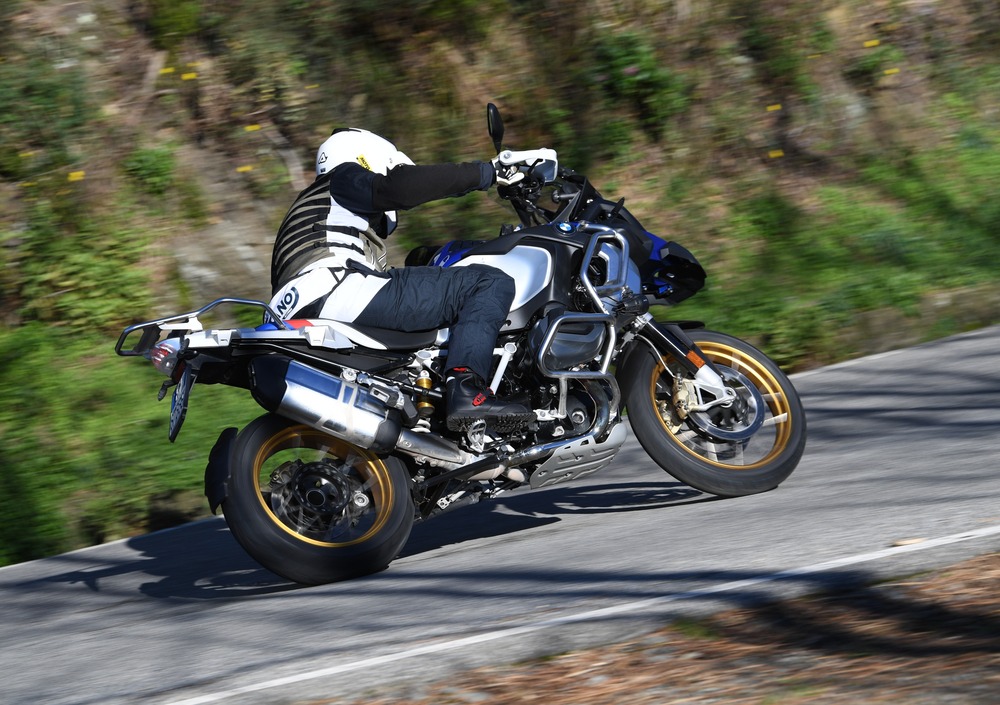 Il protagonista del nostro test è il nuovo motore boxer. Come sulla versione standard R1250GS impressiona la coppia ai regimi più bassi, nettamente superiore rispetto a prima (anche il regime del minimo è sceso di 200 giri). Ora si può tenere mediamente una marcia più alta, potendo contare su una spinta possente già da 2.000 giri e persino in sesta. La progressione non conosce interruzioni e porta in pochissimi secondi a scalare il contagiri verso la zona rossa, a oltre 8.000 giri. Il bello è che non si avverte alcuno scalino di erogazione quando la fasatura varia l'alzata delle valvole di aspirazione. Il cambio è preciso e leggero negli innesti, mentre l'assistenza elettronica a volte restituisce innesti un po' contrastati ai medi regimi. I consumi sono calati rispetto a prima e ora è facile coprire 20 km/l nel misto.