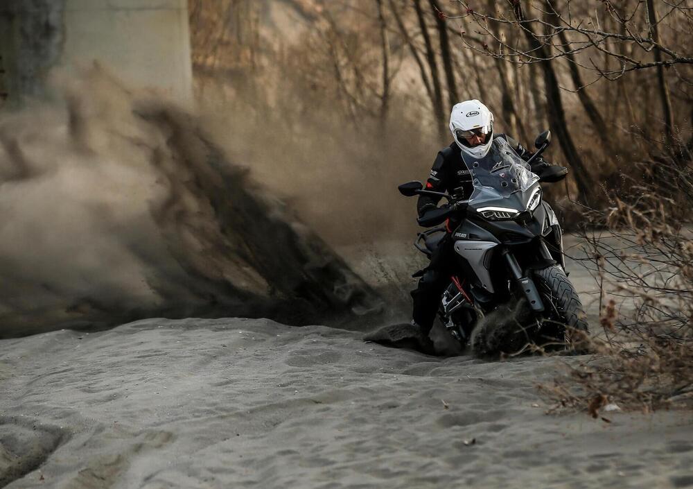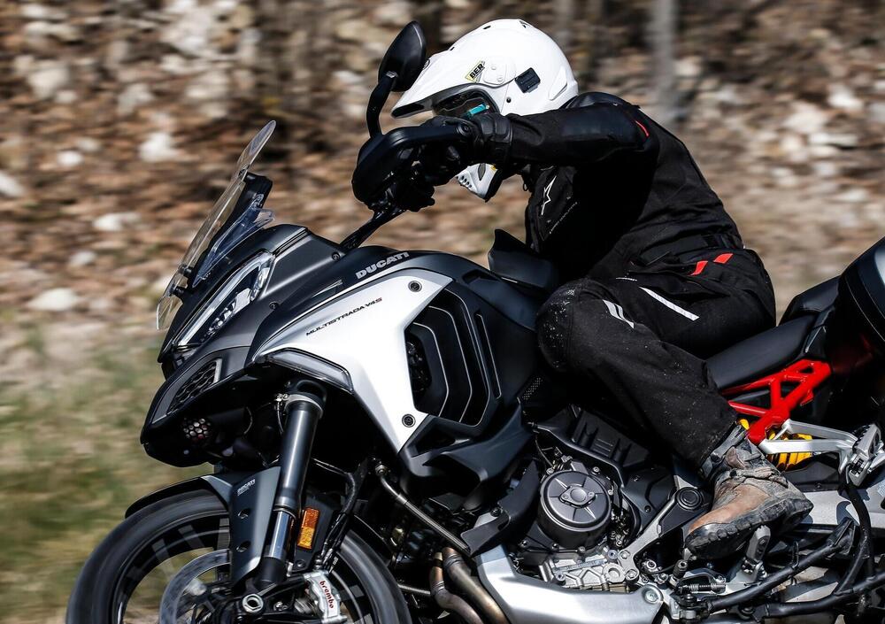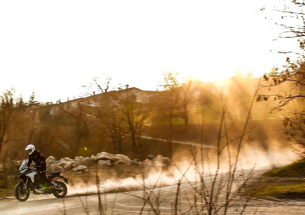 E’ molto maneggevole. Nel misto risulta facile e il motore aiuta. Va però usato in modalità Enduro con 115 cavalli. A potenza libera diventa difficile gestirla in fuoristrada. L'avantreno e la forcella in particolare danno tanta confidenza. La V4 ci è piaciuta anche sullo sconnesso, dove le sospensioni lavorano bene.