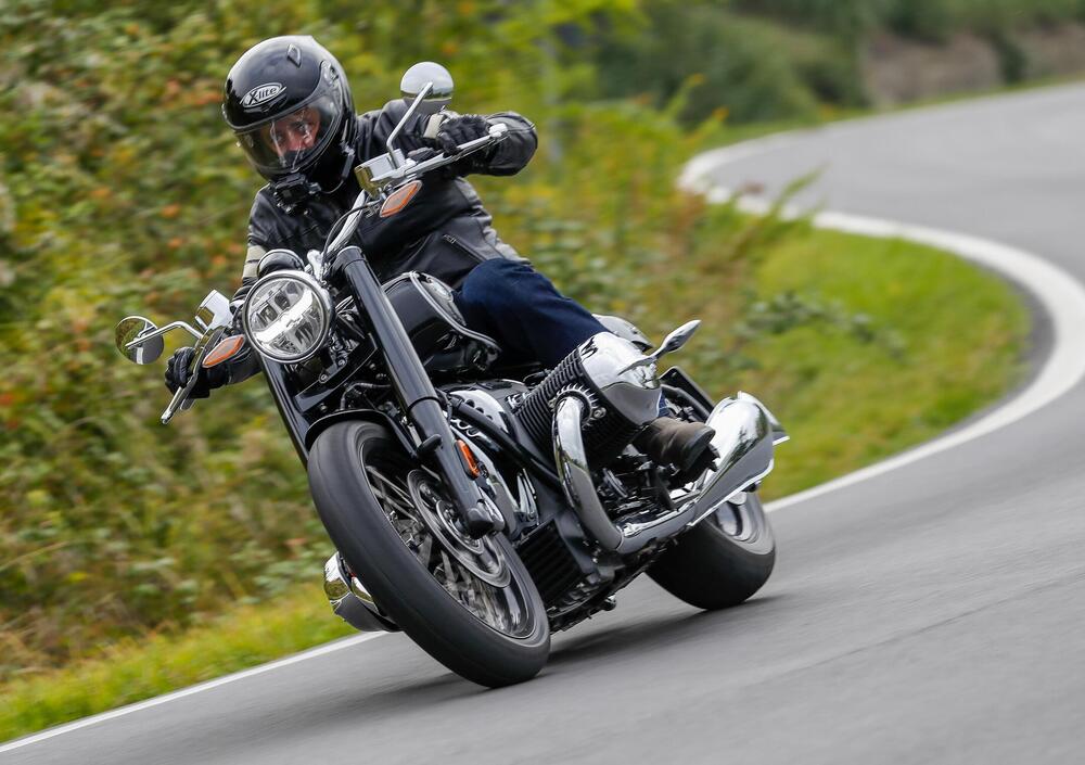 A imbarazzare nei primi chilometri sono invece la stazza - la moto è davvero lunga - e il peso che supera i 360 kg in ordine di marcia. Si guida circospetti e con molto attenzione, almeno finché non si superano i 40 km/h. Da questa soglia la R18 si lascia guidare in modo semplice e dà tanto gusto. Certo la posizione di guida, senza essere scomoda, è un po' atipica nel mondo custom. Il motore boxer costringe le pedane in questa posizione, che non è scomoda, ma risulta meno svaccata rispetto alle rivali cruiser, che le montano più avanzate. Tra le curve riesce a sorprendere, non è ovviamente una saetta, ma è sempre intuitiva e semplice persino sugli stretti tornanti delle Langhe.