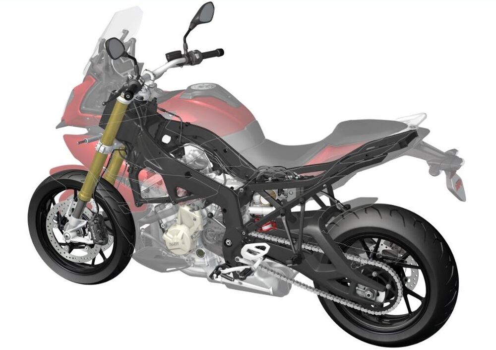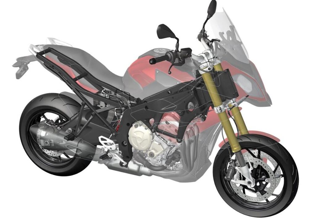 Molti dei cambiamenti ciclistici e meccanici visti nel passaggio fra S 1000 RR e S 1000 R si ritrovano sulla nuova XR che di fatto deriva dalla naked “R”, venduta a 13.200 euro. Il motore è esattamente la stessa versione modificata nel passaggio da RR a R, quindi con potenza di 160 cv a 11.000 giri e coppia massima di 112 Nm a 9.250 giri. Il quattro cilindri bialbero e sedici valvole, con alimentazione a doppio iniettore per cilindro, ha i medesimi rapporti per il cambio a sei marce e lo stesso rapporto anche per la trasmissione finale, sempre a catena, della S 1000 R. La frizione a comando meccanico è di tipo antisaltellamento e in optional è disponibile il cambio servoassistito Pro (quello introdotto sulla HP4) che consente di salire di rapporto istantaneamente senza chiudere il gas, e di dimenticarsi della frizione non solo per salire di rapporto ma anche in scalata.