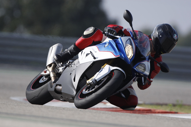 Adesso però è tempo di provare il missile tedesco con le slick e i cerchi forgiati. Il vantaggio in termini di peso garantito dai cerchi forgiati, è meno percepibile rispetto ad altre moto, e in questo potrebbe esserci lo zampino dell’elettronica che adegua in tempo reale il comportamento della moto a differenti condizioni di guida, e questo “cambiamento” potrebbe essere stato percepito prima dalle centraline che da chi è in sella. Il grip maggiore offerto da coperture specialistiche è evidente, e anche la strumentazione che visualizza sia le decelerazioni sia le accelerazioni, indica un miglioramento dei parametri, mentre stranamente non aumenta l’angolo di piega (con le Supercorsa SP si arrivava a 59° d’inclinazione), forse anche perché cerchiamo di piegare il meno possibile, per il minor tempo possibile, e cioè spigoliamo di più, per sfruttare al meglio la strepitosa coppia e l’elevata cavalleria. Elettronica o no, la S 1000 RR in questa configurazione è una moto che richiede impegno e anche un po’ di mestiere per essere sfruttata anche solo in parte. Il tracciato abbastanza tortuoso non aiuta di certo, mentre il controllo di trazione , impostato su un più permissivo -3, fa si che il posteriore allarghi e si dimeni senza tanti complimenti, soprattutto in uscita dalle curve da seconda e terza marcia, mentre in quarta e quinta la ruota posteriore si limita a lasciare evidenti strisce nere sull’asfalto!
