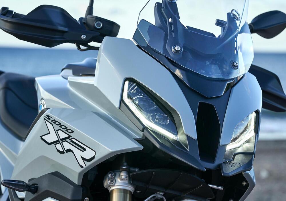 Più sportiva e compatta (ma la percezione cambia molto a seconda della colorazione) la nuova S1000XR risulta più sportiva pur trasmettendo una buona sensazione di comfort. La linea raccoglie elementi dalla R-GS - la cosiddetta flyline, ovvero la parte alta della vista laterale, ma anche l’accenno di “becco” sono richiami all’ammiraglia entrofuoristrada - e in generale conferisce alla XR una connotazione adventure nonostante in BMW non perdano occasione per sottolineare la totale assenza di ambizioni fuoristradistiche.