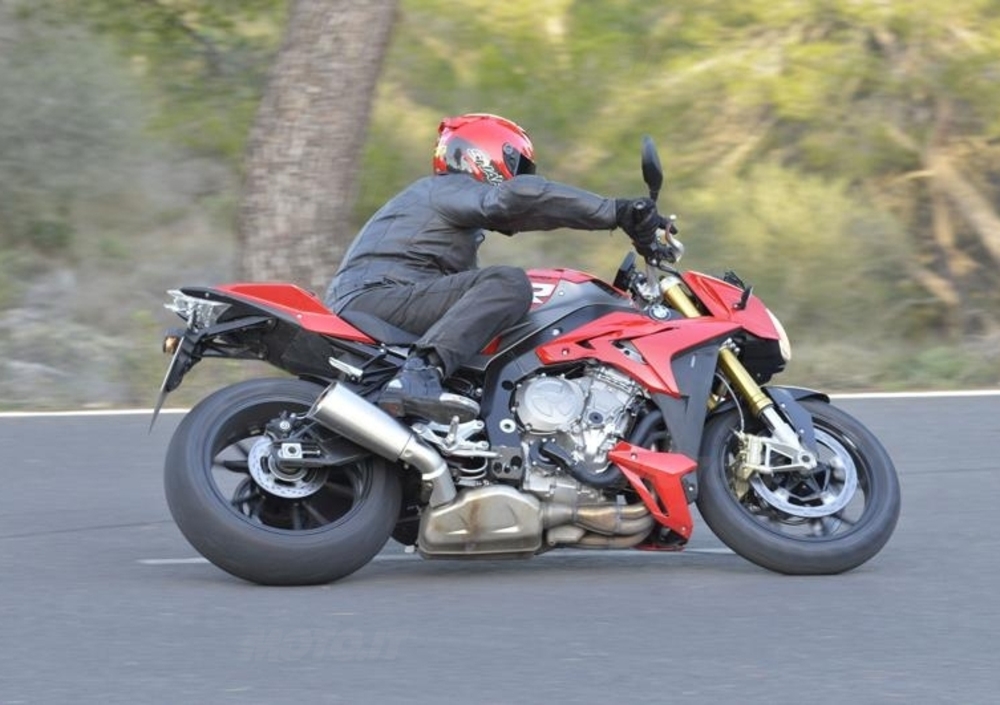 Finalmente possiamo sondare le effettive capacità della moto in modalità “Dynamic” e “Dynamic Pro”, con quest’ultima configurazione che permette maggiore libertà, e un consumo “alternato” dei pneumatici (ci siamo capiti…?). che finalmente possono lavorare alla giusta temperatura d'esercizio. Le Pirelli Diablo Corsa di primo equipaggiamento sono finalmente in grado di assecondare nel modo migliore le doti di questa roadster, che si dimostra perfettamente a suo agio sia sul veloce sia nello stretto, e consentono anche di saggiare le doti dell'impianto frenante Brembo, potente e resistente agli stress, assecondato da un ottimo Race-Abs, che ha l'unico difetto di essere leggermente troppo aggressivo nella prima fase di frenata. Gli oltre 150 km percorsi durante il test ci hanno affaticato moderatamente, la sella non ci ha creato problemi alle parti basse (nel caso è disponibile una versione più imbottita denominata confort), la posizione di guida non ci ha affaticato i polsi e le braccia, mentre abbiamo potuto godere delle prestazioni e di una dotazione tecnica degne di una vera superbike. A tale proposito ci ripromettiamo di portare in pista la S 1000 R al più presto, magari mettendola a confronto con la sorella “RR”, che su più di un tracciato, potrebbe uscirne malconcia.