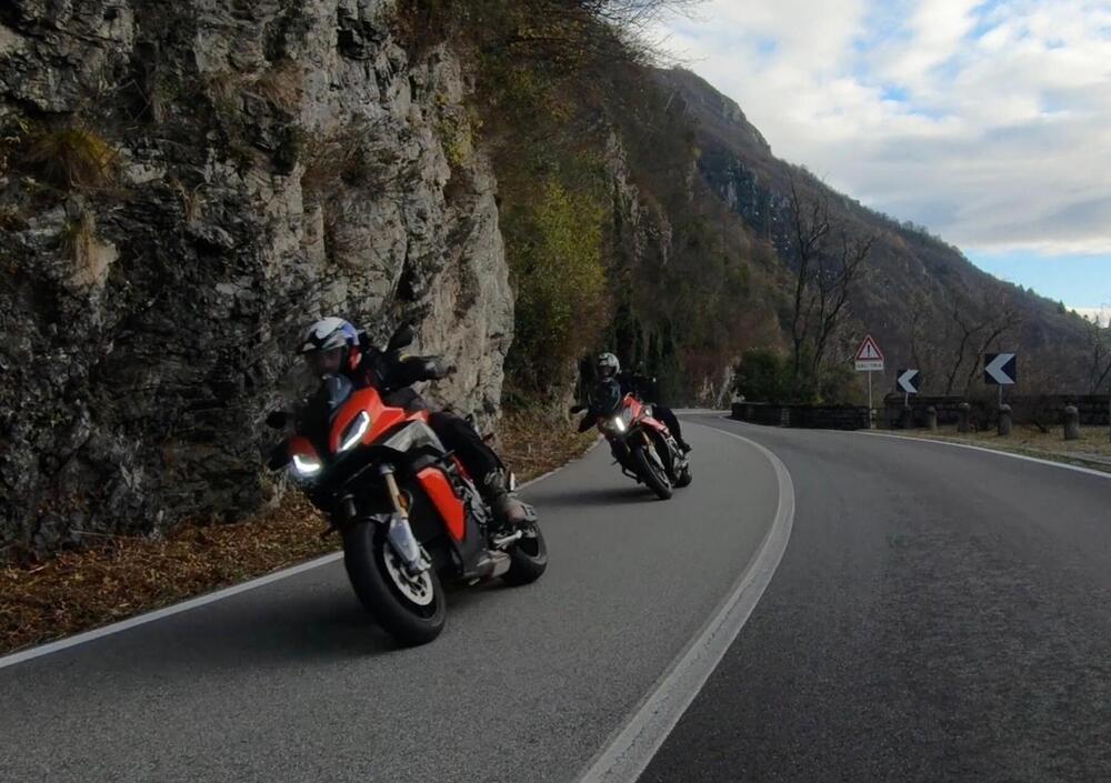 Per scoprirlo le abbiamo portate su strada e gommate con le ottime Metzeler Roadtec 01 SE, perfette nella guida sportiva anche in una giornata fredda come quella che abbiamo trovato.