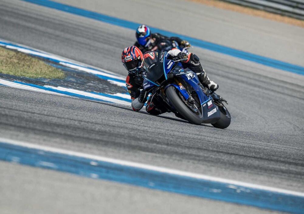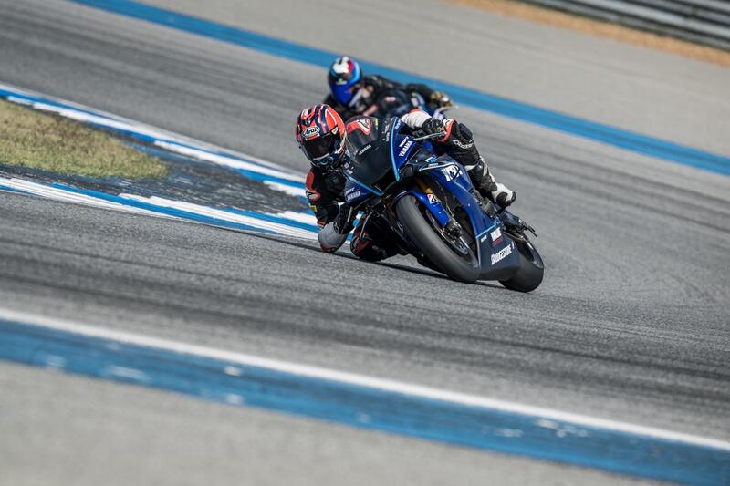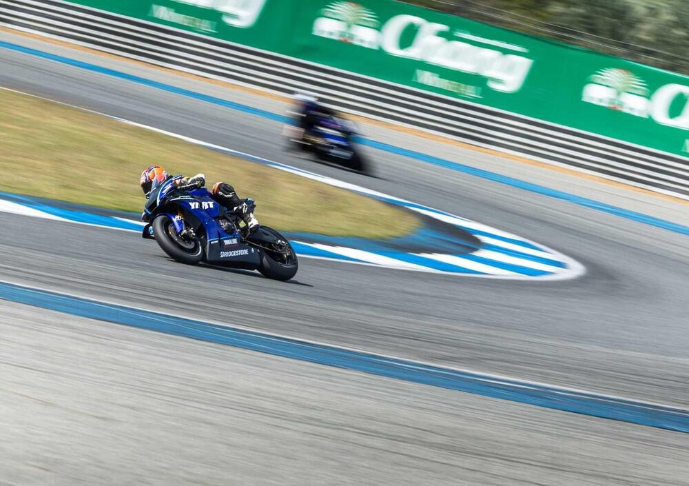 Il discorso cambia diamentralmente quando siamo entrati in pista con le V03, che si sono dimostrate sin da subito decisamente più specialistiche e performanti. Per l'occasione Bridgestone ci ha messo a disposizione anche delle moto all'altezza, come le Yamaha R1 Yart, con quote ciclistiche e sospensioni più allineate a quelle che sono le caratteristiche di queste slick.