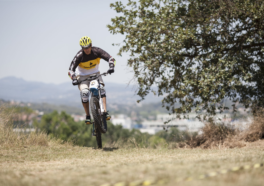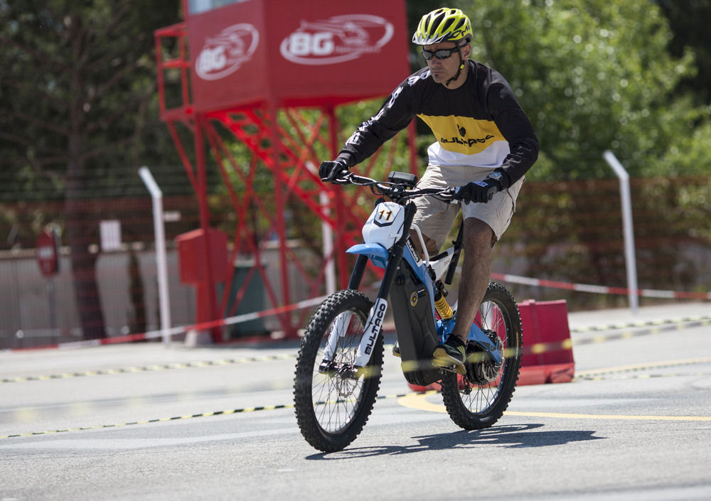 Ve la immaginate una down-hill su una pista da motocross? Tutto bene, finché si scende, ma poi in salita hai voglia di pedalare. Invece la nuova moto-bike della Bultaco corre sui saliscendi di Montmelo a 50 orari come se nulla fosse. Le sospensioni, completamente regolabili, sopportano le buche e i salti con piglio enduristico e la frenata ha la potenza che serve. Occorre solamente un po’ di attenzione in uscita di curva, quando si gira tutto l’acceleratore e la coppia del motore mette in crisi i tasselli laterali dei pneumatici, evidentemente studiati per sopportare la modesta potenza muscolare dei ciclisti.