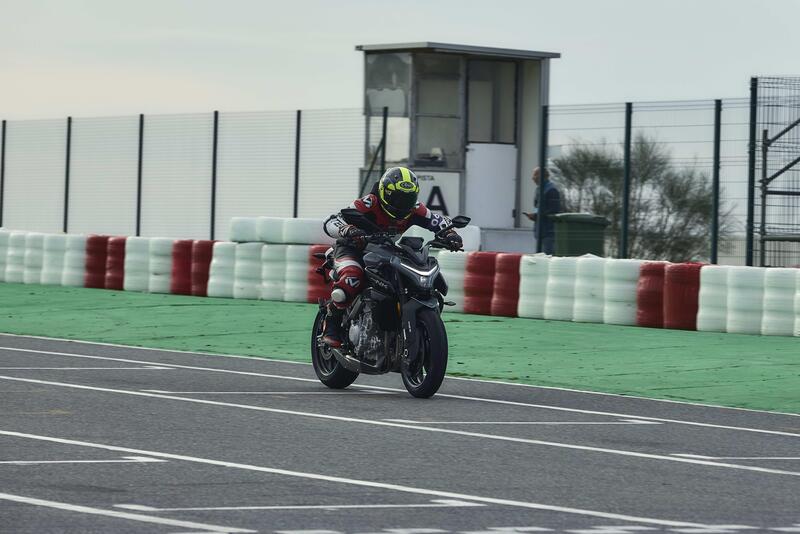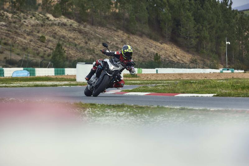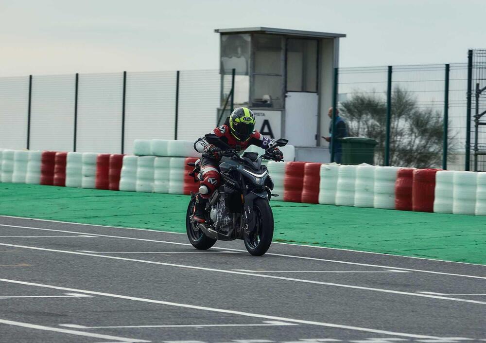 La ciclistica, in una pista come il kartodromo del Circuito di Portimao, tiene botta anche a ritmi più sostenuti. In questo contesto la forcella potrebbe avere più sostegno, specialmente perché l'impianto frenante anteriore ha un bel mordente, attacca subito, e innesca un particolare affondamento della forcella. Su strada, con ogni probabilità, il comportamento sarà differente.