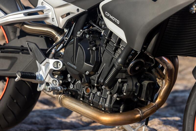 È l'unità derivata dal 790 KTM costruita in Cina da CFMOTO: un bicilindrico in linea Euro 5 da 95 cavalli a 9.250 giri e 79 Nm di coppia a 8.000 giri. Dotato di frizione antisaltellamento e di cambio a sei rapporti, sarà depotenziabile per le patenti A2 ed ha la fasatura a 285°per avere un suono distintivo e un'erogazione simile a quella di un motore a V, oltre ad avere un doppio contralbero antivibrazioni. L'elettronica di controllo è CFMOTO e per la gestione della potenza sono disponibili tre mappe: Sport, Street e Rain, ciascuna diversa nella progressione dell'erogazione. La velocità massima dichiarata è di oltre 220 km/h. Nella dotazione elettronica spicca il cruise control per tutte le versioni ma è invece assente il Traction Control.