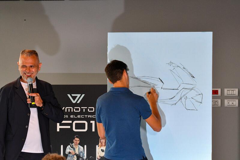 Con questa decisione Graziano Milone ha inoltre annunciato l’impegno di Vmoto a proseguire la crescita commerciale in Europa impiegando risorse ed eccellenze locali nel campo del design e dello sviluppo tecnologico utili al consolidamento della leadership di Vmoto sui principali mercati mondiali. A confermare le intenzioni di Milone abbiamo avuto la possibilità di scoprire, in anteprima mondiale, le linee dell'esclusiva novità Vmoto. Daniele Mazzon ha realizzato in diretta lo schizzo del design dello scooter che vedremo a EICMA 2023!