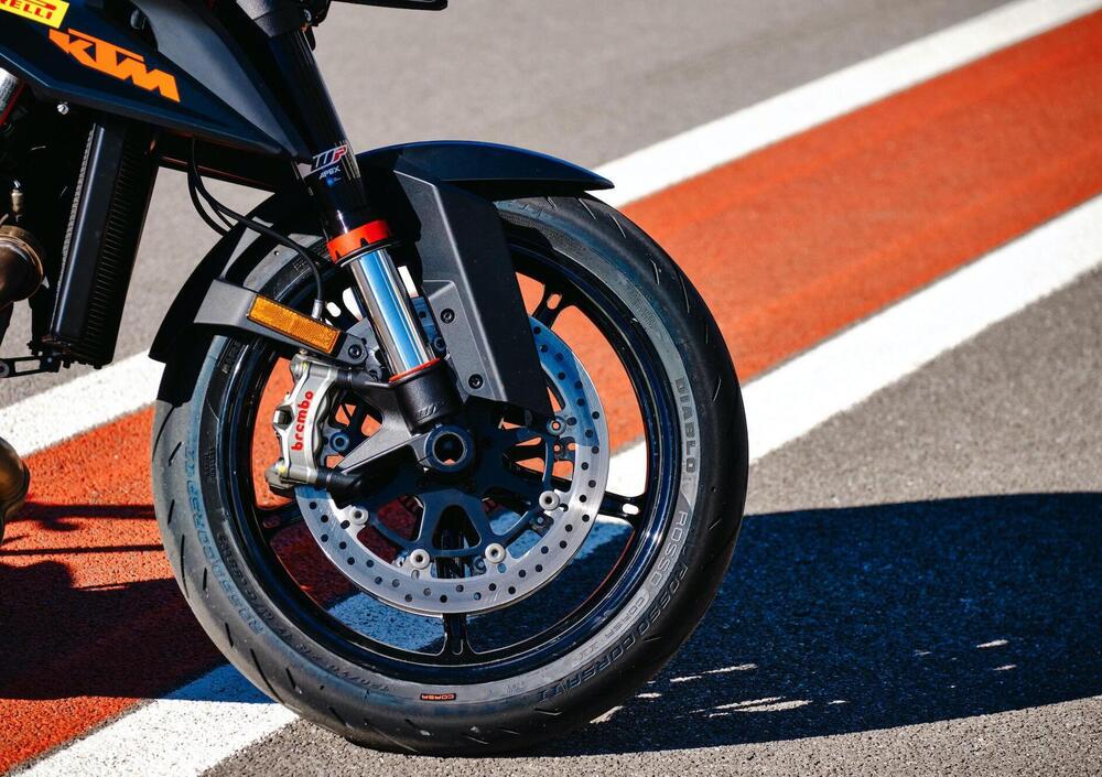 E sull’accidentato, anche quell’eccesso di rigidità che avevamo riscontrato ai tempi della comparativa ci sembra sparito, a testimonianza del livello qualitativo delle sospensioni, che “sentono” tantissimo le regolazioni. Una valutazione che trova conferma nell’uso in pista, dove con la taratura di serie la Super Duke R traduce i trasferimenti di carico e la grinta degli input del pilota in qualche ondeggiamento e una sensazione di generale vaghezza. Basta alzare la sella, prendere nota della taratura raccomandata per la pista e adeguare la taratura, per poi eventualmente lavorare di fino se si vuole qualcosa di più.