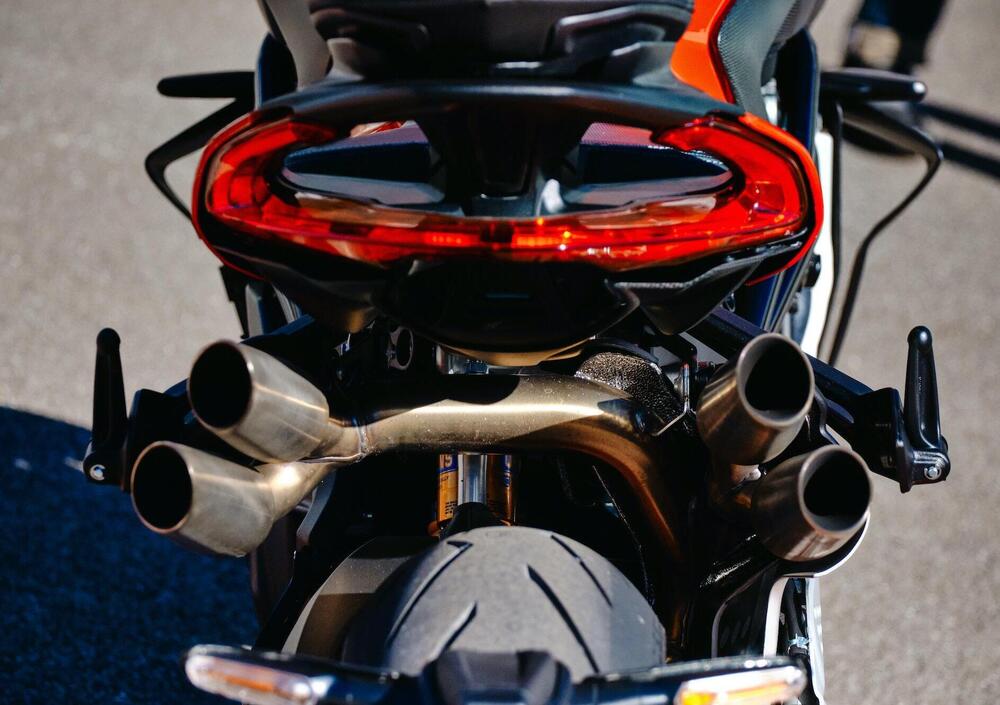 Una certezza. Alta di sella, carica sui polsi nonostante il manubrio largo, è quella che fin da subito ti comunica precisione, equilibrio e… ti invita a tirarle il collo. Lunga di rapporti, come si addice alla sua derivazione sportiva, è quella che offre più confidenza quando si vuole alzare il ritmo senza costringere a un impegno eccessivo, anche grazie a una connessione fra acceleratore e motore senza confronti nella categoria. E poi, la voce del suo V4 con il terminale Akrapovic di serie è qualcosa di quasi sensuale.