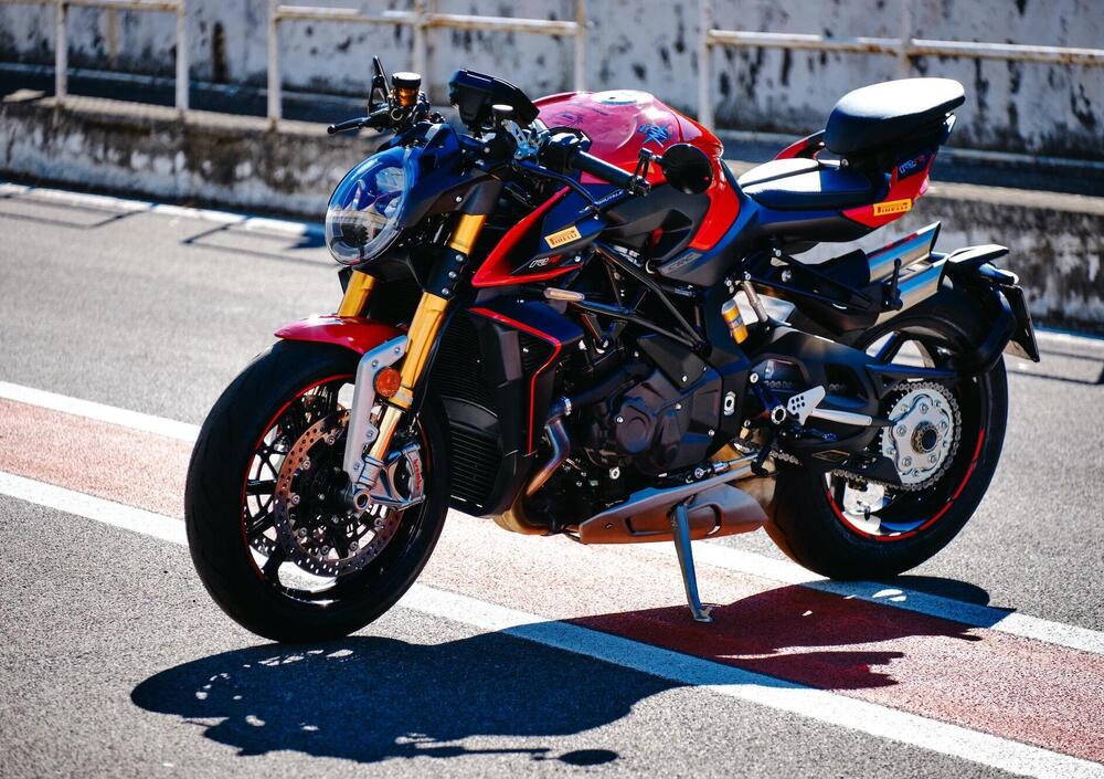 La MV Agusta Brutale 1000RR è brutale come il suo nome. Rigida, estrema nella posizione di guida, è scomoda e impegnativa fisicamente oltre che psicologicamente. Però, appena ci salite in sella e avviate il motore, vi ripaga con un ruggito che può uscire solo da una MV Agusta, su strada (previo ammorbidimento dell’assetto) si rivela insospettabilmente agile e in pista è quella che - naturalmente - asseconda meglio la guida di corpo perché gli stessi semimanubri che strappano qualche imprecazione su strada, in circuito diventano un bonus. Il motore è quasi bipolare; in basso non brilla per spinta ma gira pulito con un filo di gas, in alto spinge come un caccia a postbruciatori accesi, ma è quella con il peggior feeling sull’acceleratore, e le vibrazioni agli alti non sono trascurabili. D’altra parte si chiama Brutale, no?