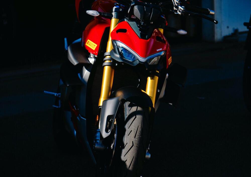 Il nostro test conferma le impressioni maturate all’epoca del primo contatto: la Streetfighter V4S su strada impressiona per accoglienza e dolcezza. Il suo quadricilindrico gira tondo e pulito fin dai minimi regimi, scevro da vibrazioni e con una tonalità inconfondibilmente Ducati, unendo pastosità e trattabilità ai bassi e medi a una spinta aerospaziale agli alti. La ciclistica è perfettamente accordata al motore: sintetizza agilità, stabilità e precisione come poche altre moto di questo livello prestazionale senza esagerare con il tono idraulico delle sospensioni, che copiano bene anche le asperità degli asfalti più disastrati.