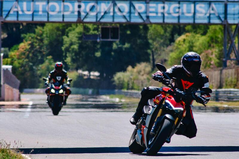 In pista, la Streetfighter V4S mette in mostra una superiorità prestazionale quasi imbarazzante. Su un tracciato come quello di Pergusa, con forti accelerazioni da piegati e lunghi rettilinei su cui scaricare i cavalli, la Ducati sbalordisce sia per come riesca a scaricare a terra la sua potenza, ma anche per stabilità e precisione. Sarà merito delle alette aerodinamiche, sarà l’albero controrotante, fatto sta che con la Streetfighter si tengono traiettorie più strette che con le rivali e si arriva al riferimento della staccata con un vantaggio velocistico non banale. Nonostante ciò, quando ci si attacca ai freni si finisce per arrivare corti alla curva successiva, tale è la potenza dell’impianto unita a leggerezza della moto e stabilità in staccata - anche in questo caso, le alette aerodinamiche potrebbero avere qualcosa a che vedere.