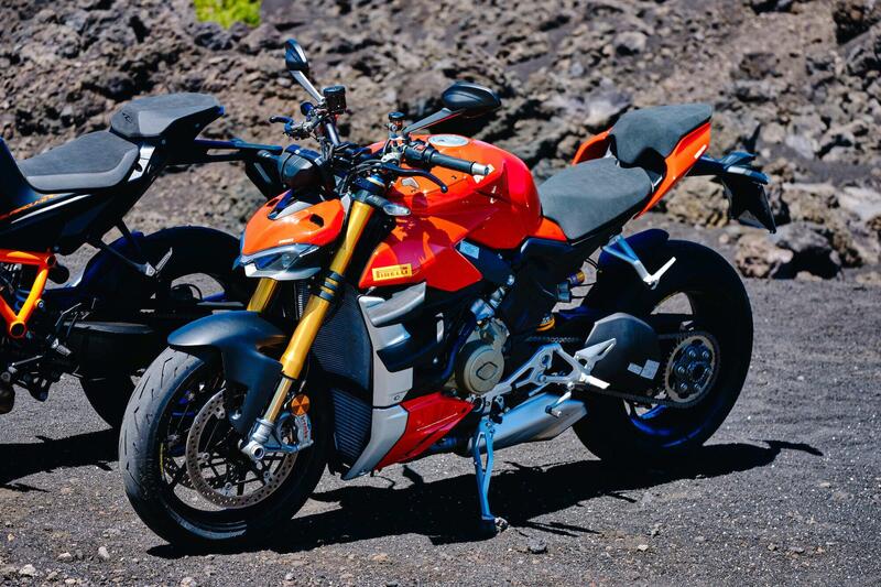 La Ducati Streetfighter V4S, la novità più attesa dell’anno, brilla invece per la sua poliedricità. È capace di trotterellare senza impegno come non ci si aspetta da una Ducati, è fin quasi comoda nella sua sportività, ma cambia faccia non appena la si spreme. Il motore è roba da fantascienza: quando credi di stare andando già forte cambia passo e inizia a spingere come non credi possibile, e devi essere pronto a innestare un’altra marcia prima di prendere il limitatore. E se ti attacchi ai freni è come sbattere contro un muro. Nella guida estrema richiede un po’ di apprendistato, perché la ciclistica non comunica in maniera convenzionale, e la risposta all’acceleratore potrebbe essere più diretta - anche nei riding mode più estremi è un po’ “filtrata” - ma non ne esiste una che sintetizzi allo stesso modo versatilità, accessibilità e cattiveria. E le finiture sono una spanna sopra tutto il resto.