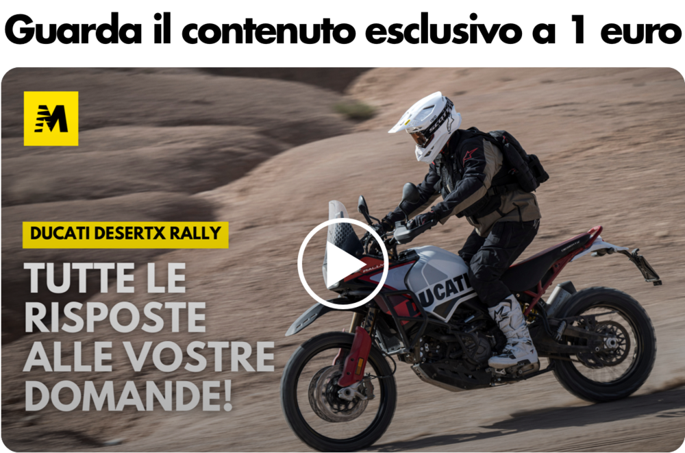 Se non riesci a vedere il nuovo contenuto esclusivo, niente paura: è sufficiente attivare l'abbonamento a Moto.it al costo di 1 euro al mese, o 10 euro l'anno! Oltre a liberarvi dai banner pubblicitari, potrete godere di contenuti sempre più esclusivi, proprio come questo.
