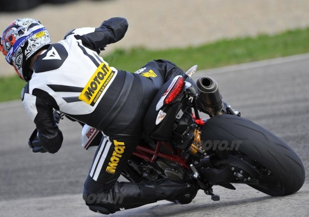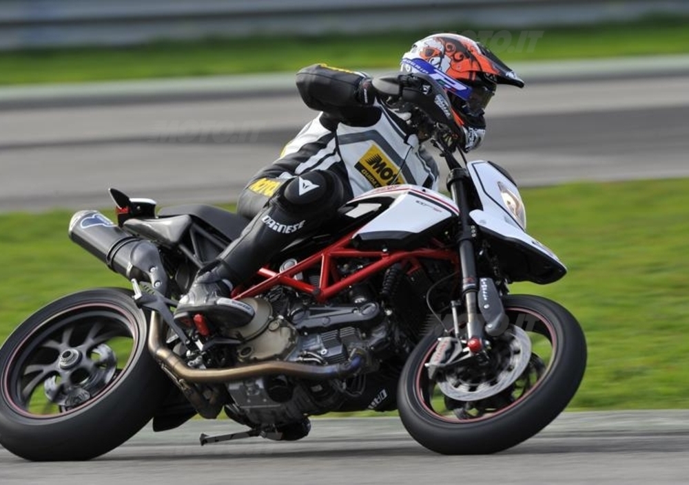 Si spazia così dalla 796, vera entry level dedicata a chi sogna la Hypermotard, ma desidera comunque guidare una moto facile anche nel traffico (per questo è dotata di una frizione in bagno d'olio più morbida da azionare), su su fino alla specialistica EVO SP, che ci ha deliziato con un rigore ciclistico e una risposta al richiamo del gas che la rendono divertentissima anche in circuito. Oltre che molto efficace, per lo meno sui tracciati non troppo veloci.