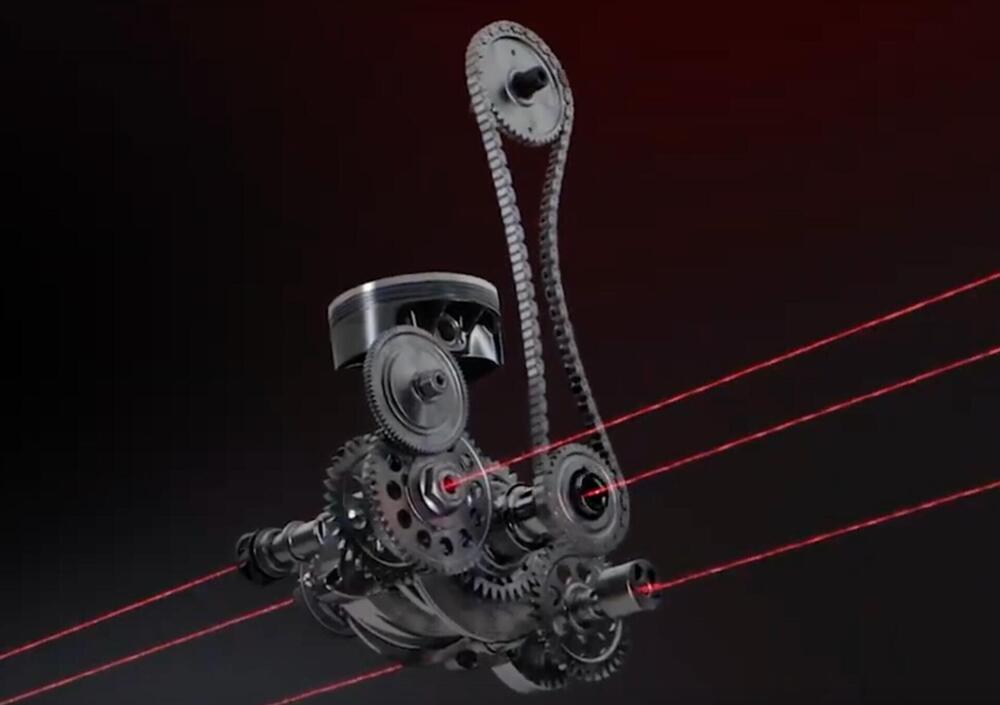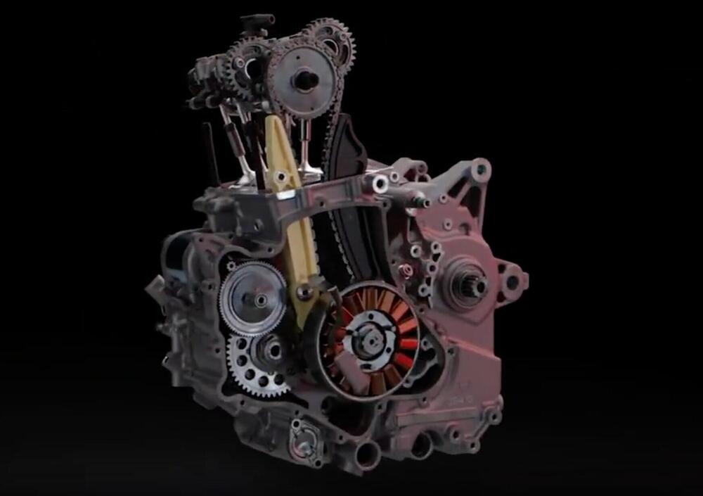 In comune con il bicilindrico della Panigale, c’è il pistone, il disegno della camera di combustione, e il sistema desmodromico incluse le valvole di grandi dimensioni.