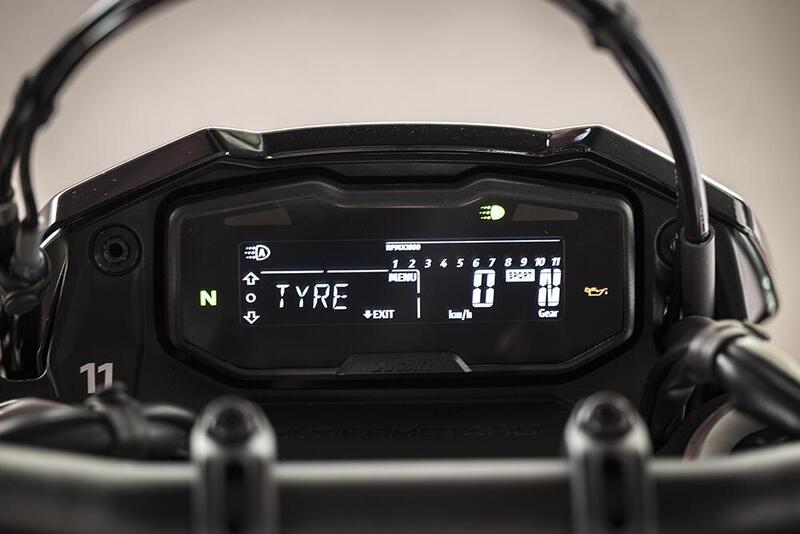 La dotazione elettronica di serie dell’Hypermotard 698 Mono è certamente la più completa della sua categoria, e comprende molti dei controlli presenti sulla Panigale V4. Sono presenti ABS Cornering, Ducati Traction Control, Ducati Wheelie Control, Engine Brake Control, Ducati Power Launch e Ducati Quick Shift (DQS) Up/Down, di serie sulla versione RVE, optional per la versione standard.