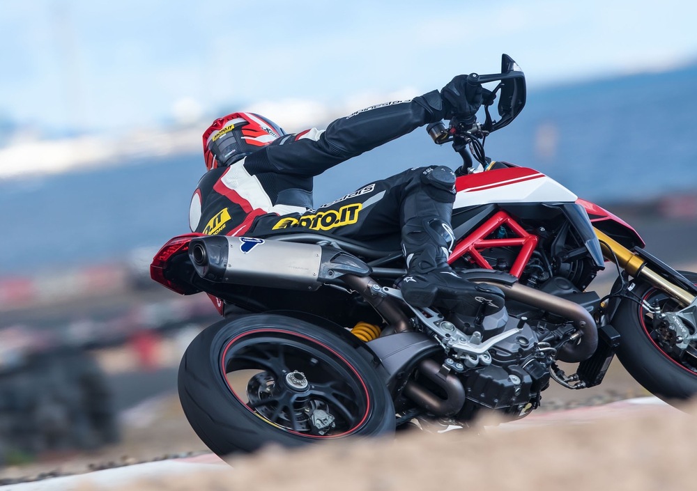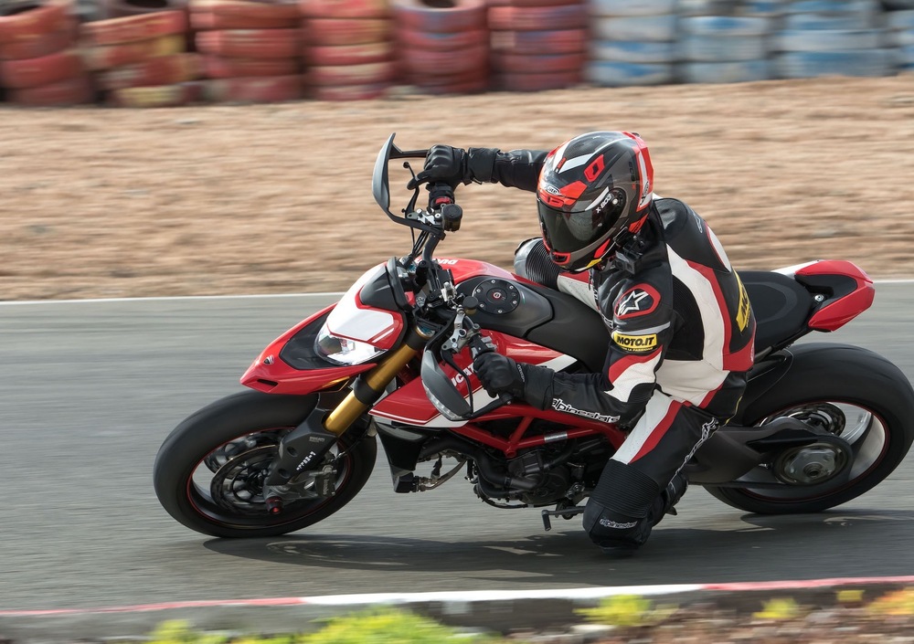 Poter arretrare sulla sella in fase di frenata o avanzare quando si riprende il gas in mano, è agevole e consigliabile, ma se proprio non potete resistere alla tentazione di fare scivolare il posteriore in frenata, ebbene basta lasciar fare lo Slide by Brake, che permette di “intraversare” la Hypermotard q.b. (quanto basta), non un grado di più. Il cambio dotato di DQS lavora alla grande e permette di concentrarsi maggiormente sulla guida.