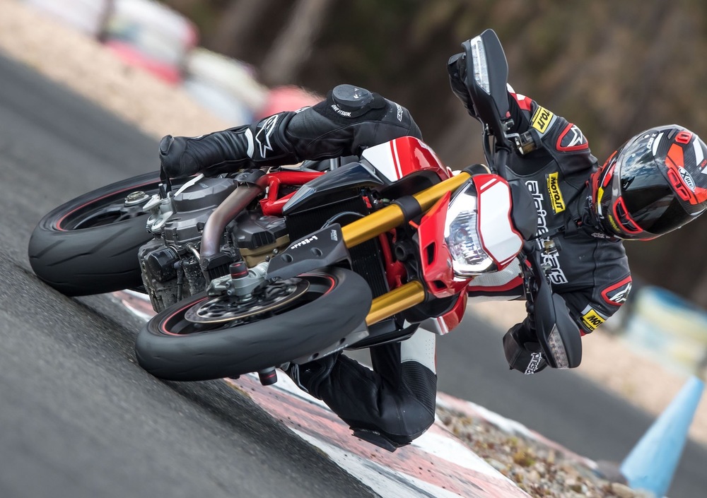 Salendo sulla SP molte sensazioni cambiano profondamente. Certo non si può pretendere di fare un confronto diretto con la 950 passando dalla strada alla pista, ma le maggiori qualità della versione top, emergono nel giro di pochissimo. Le raffinate sospensioni garantiscono, oltre ad una maggiore luce a terra, una sensazione di controllo superiore grazie a una scorrevolezza migliore. I trasferimenti di carico sono meno accentuati mentre l'avantreno trasmette in maniera più precisa cosa sta combinando il pneumatico anteriore. Pneumatico, il Pirelli Diablo Supercorsa SP che garantisce maggiore grip rispetto ai già ottimi Diablo Rosso III della 950 (che però mantengono uno standard elevato di aderenza anche in condizioni meteo non ottimali).