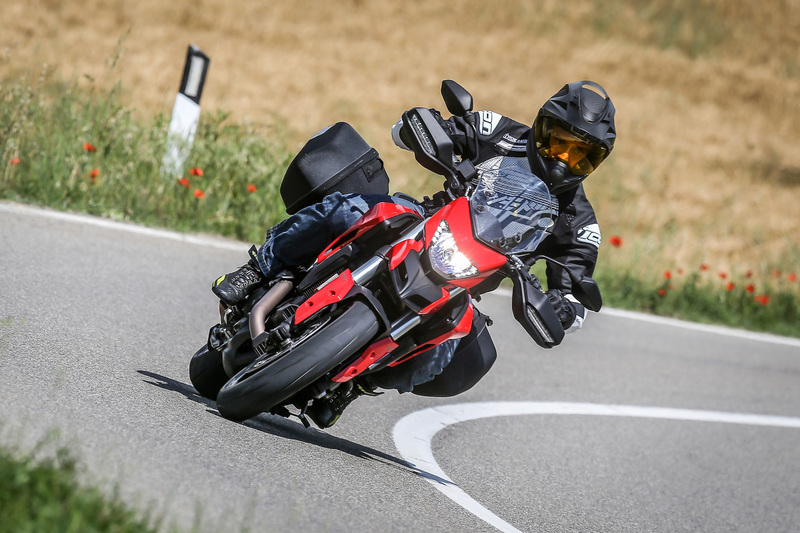 Il motore Testastretta 11° in versione ridotta, come sulla Hyper, è diventato praticamente perfetto nonostante l’Euro-4. Un po’ troppo magro nei primi minuti di funzionamento, e quindi un po’ scorbutico “appena sveglio”, diventa un vero cioccolatino allo stabilizzarsi della temperatura: dolce nella risposta, potente, corposo sotto, riprende bene fin dai 2.000 giri e si rivela scevro da vibrazioni, dimostrandosi adattissimo a qualunque uso. Dal trotterellio autostradale fino alla sparata sul passo di montagna – dove si rivela molto meno impegnativo dei grossi 1200 ma altrettanto gratificante – il 939 regala al suo pilota il piacere di spalancare il gas invece di modularlo con timore reverenziale come sulle “grosse”, anche grazie alle Pirelli Scorpion Trail di primo equipaggiamento che si sono dimostrate praticamente perfette. E scusate se è poco.