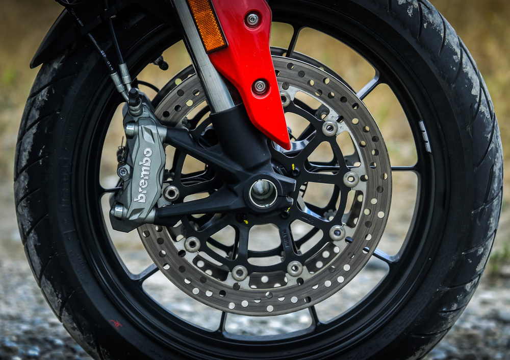 L’impianto frenante è praticamente perfetto, con un mix perfetto di potenza e modulabilità ed un ABS di cui non si percepisce la presenza se non quando vi salva da qualche eccesso di esuberanza su asfalti freddi o umidi.
