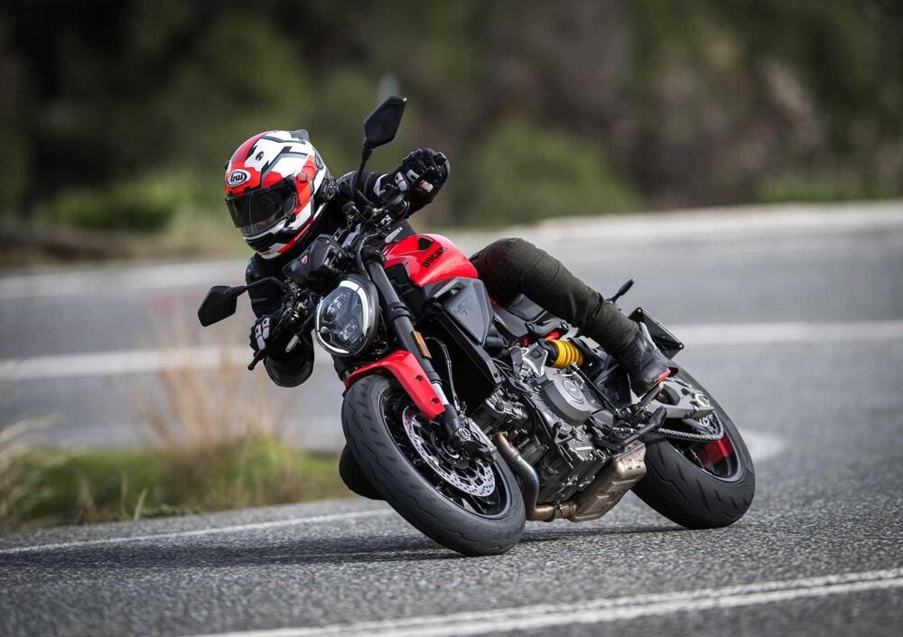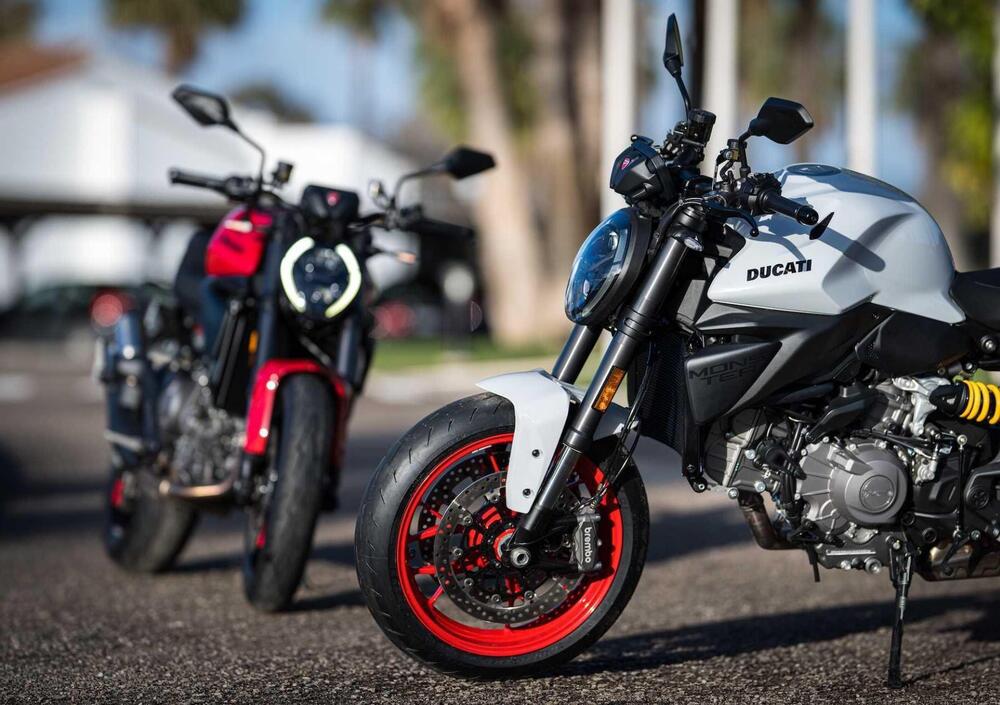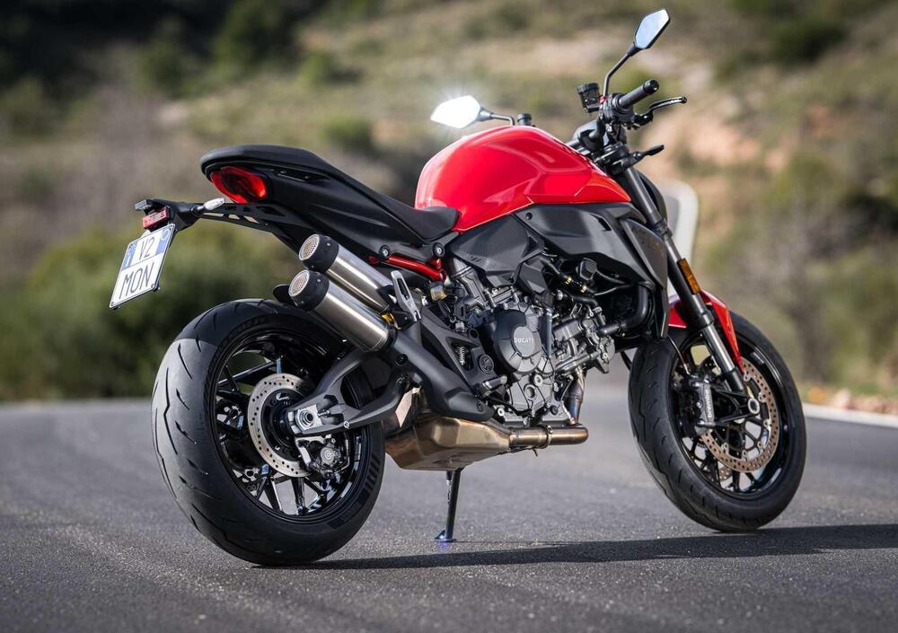 Il design: pur mantenendo i tratti distintivi del Monster, il nuovo modello compie un viaggio a ritroso verso le origini. Il serbatoio a dorso di bisonte è più scolpito e muscoloso, le prese d'aria frontali richiamano direttamente i modelli storici, il faro è più compatto e "incassato" tra le spalle del serbatoio. La coda è più corta e leggera, con il telaietto posteriore misto in tecnopolimero e traliccio che sostituisce la soluzione precedente. Il risultato è una moto visivamente più compatta, snella e sportiva, ma che mantiene intatta l'identità Monster.