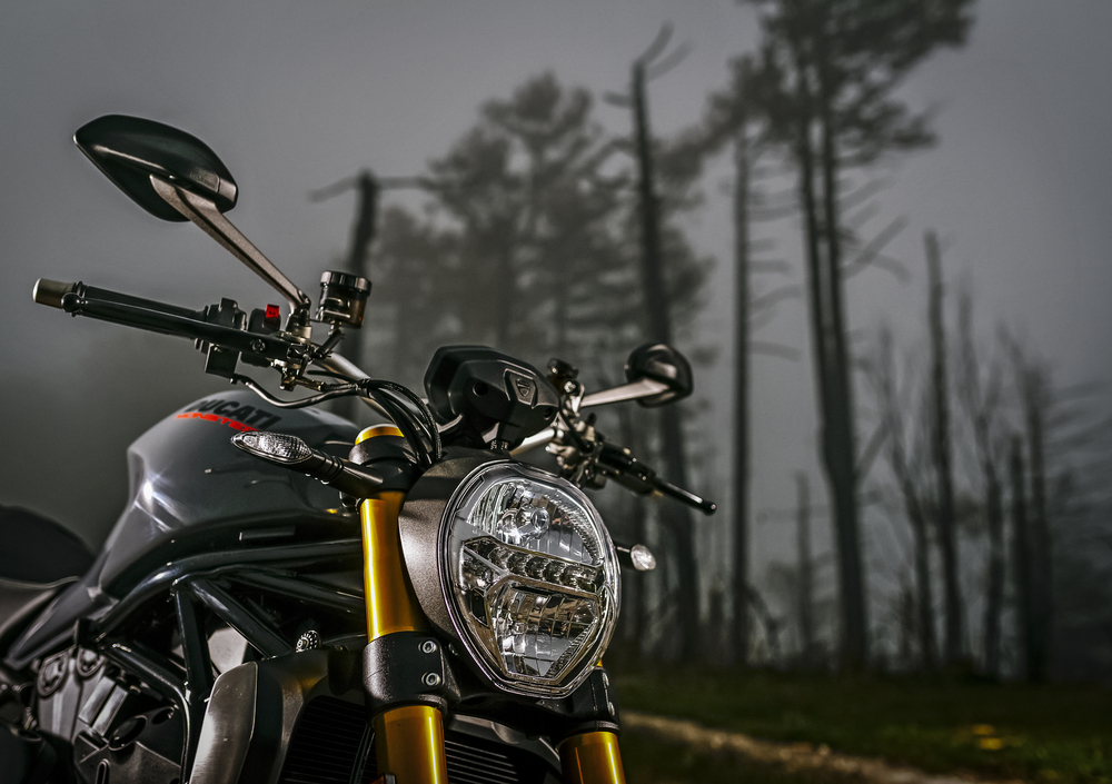 Il bicilindrico, anche se Euro 4, mantiene un timbro di scarico a dir poco dirompente. Non vibra, scalda moderatamente nel traffico (tenete presente che abbiamo guidato il mostro con temperature comprese tra i 5 e i 13 gradi) e ha un'erogazione regolare a partire dai 2.500 giri. Sotto strappa un po' (non ha la fasatura variabile DVT, che però avrebbe comportato un aggravio di peso di almeno 5 kg). Dai 3.000 giri si hanno già 10 kgm di coppia e la Monsterona inizia a martellare accelerazioni brucianti. Dai 5.000 giri la 1200 strappa fuori dalle curve con autentica rabbia e la progressione non conosce interruzioni fino a quasi 10.000 giri. Il desmo è assistito dall'ottimo cambio a sei marce; abbiamo apprezzato in particolare il quick shift, che si è rivelato tra i migliori provati per il suo funzionamento privo di impuntamenti sia in scalata che a salire di rapporto. La sesta è molto lunga e fa riposare il motore a soli 3.000 giri quando si viaggia a 90 km/h.