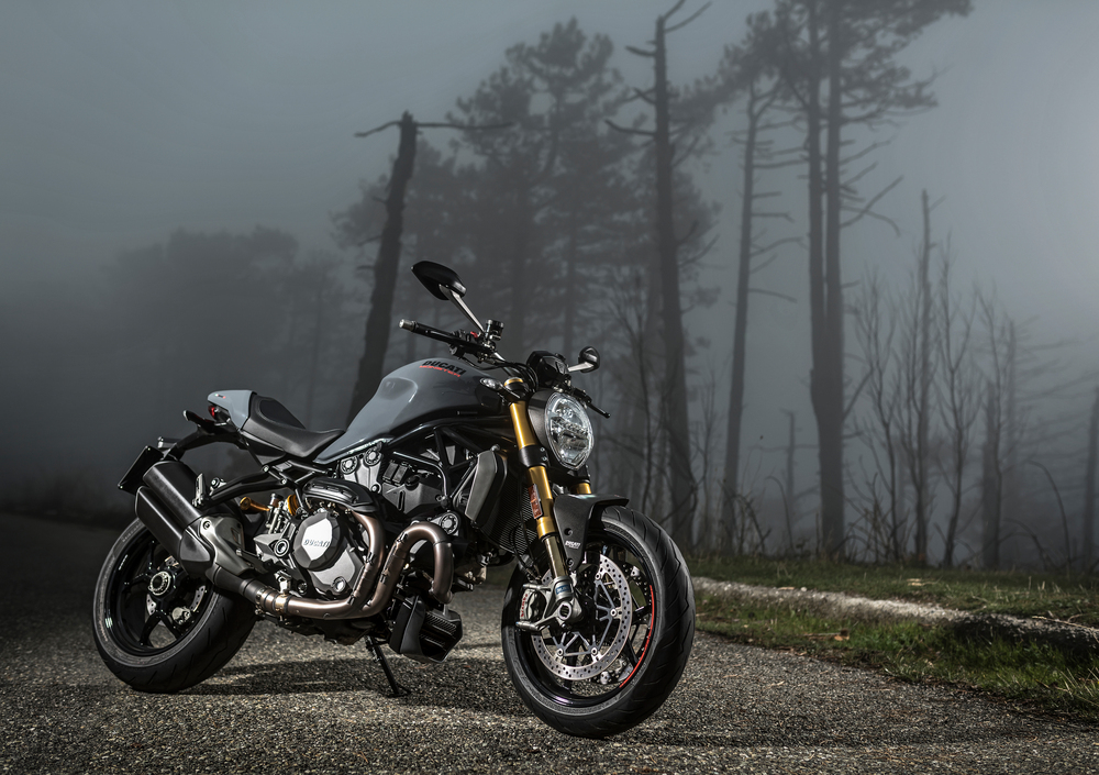 La Monster 1200 2017 è già diversa da un punto di vista estetico: il serbatoio, in acciaio, è stato snellito e riavvicinato all’icona originaria del 1993 (recuperando anche il gancio di fissaggio vicino al cannotto di sterzo) e il codino è stato completamente rivisto in chiave sportiva. Cambia anche il motore con il relativo pacchetto di gestione elettronica. Arriva l’ultima evoluzione del Testastretta 11° DS. Sparisce la distinzione prestazionale che caratterizzava il modello precedente: il nuovo propulsore offre 150 cv a 9.250 giri ed è montato su entrambe le versioni, standard e S, che quindi crescono rispettivamente di 15 e 5 cv. Notevole anche l’incremento in termini di coppia massima, con 12,9 kgm a 7.750 giri. E' stato ricalibrato il Ride-by-wire per offrire un’erogazione ancora più fluida e regolare. Diverso è anche lo scarico, ora più snello nei terminali che sono simili a quelli della Monster 1200R ed è sempre presente la valvola a controllo elettronico. Sono confermati i tre Riding Mode precedenti (Sport, Touring e Urban), ma ora c'è anche la piattaforma inerziale IMU che offre l’ABS con funzionalità Cornering, un controllo di trazione più raffinato nell’intervento (settabile su 8 livelli) e l’anti-impennata DWC (Ducati Wheelie Control). Sulla S è di serie il prezioso quick shift DQS, che funziona sia a salire che a scendere di marcia.