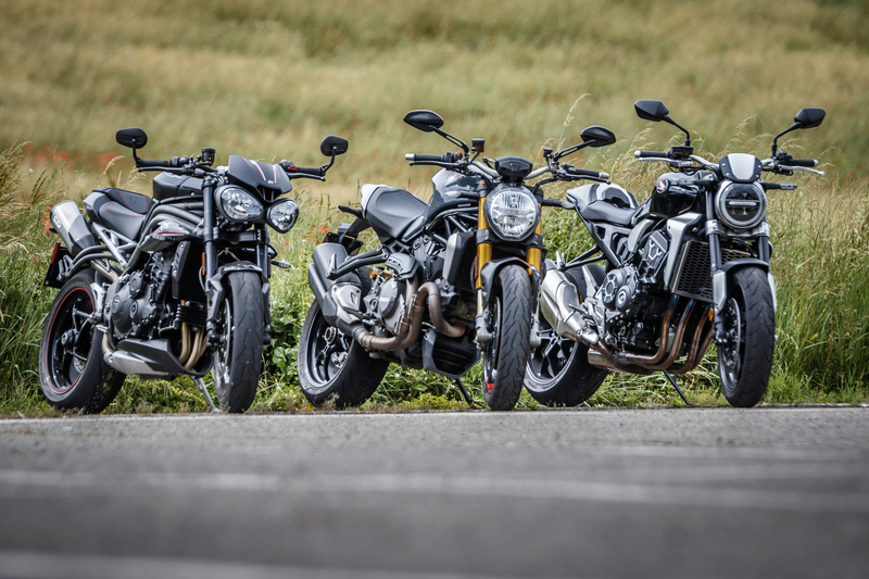 Moto: Ducati Monster 1200S, Honda CB1000R, Triumph Speed Triple