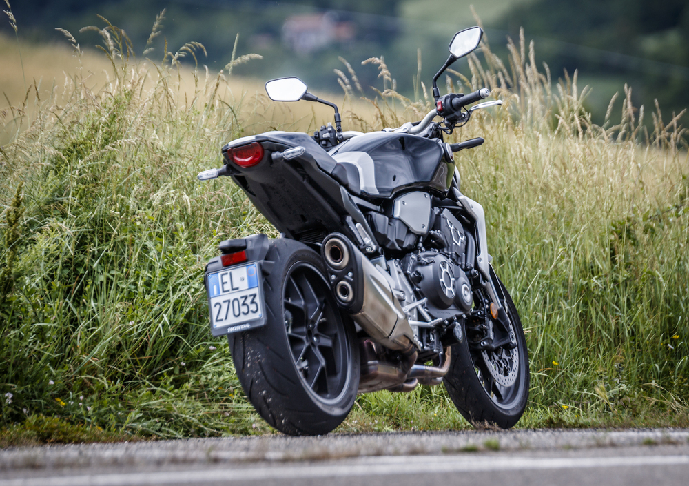Qualche vibrazione filtra nei transitori ai medi regimi, ma non disturba più di tanto, e il quattro cilindri Honda scalda davvero pochissimo anche nel traffico. In compenso, la taratura rigidissima del mono non fa sconti a fondoschiena e reni del pilota…