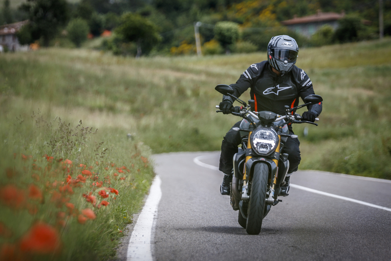 Una goduria. Il tempo è passato – 25 anni, un quarto di secolo – e il Monster si è evoluto e raffinato moltissimo rispetto alle generazioni precedenti, ma rimane inconfondibilmente fedele a quella personalità sportiva e un po’ ignorante che ne ha sancito il successo. In sella ci si trova nel pieno controllo della situazione, con un manubrio largo e il giusto carico sui polsi, una sella sostenuta e pedane belle arretrate che facilitano la guida di corpo. Ma che fastidio l’interferenza del piede destro sugli scarichi quando si guida sulle punte…