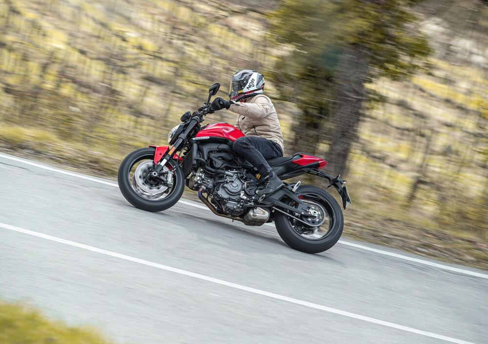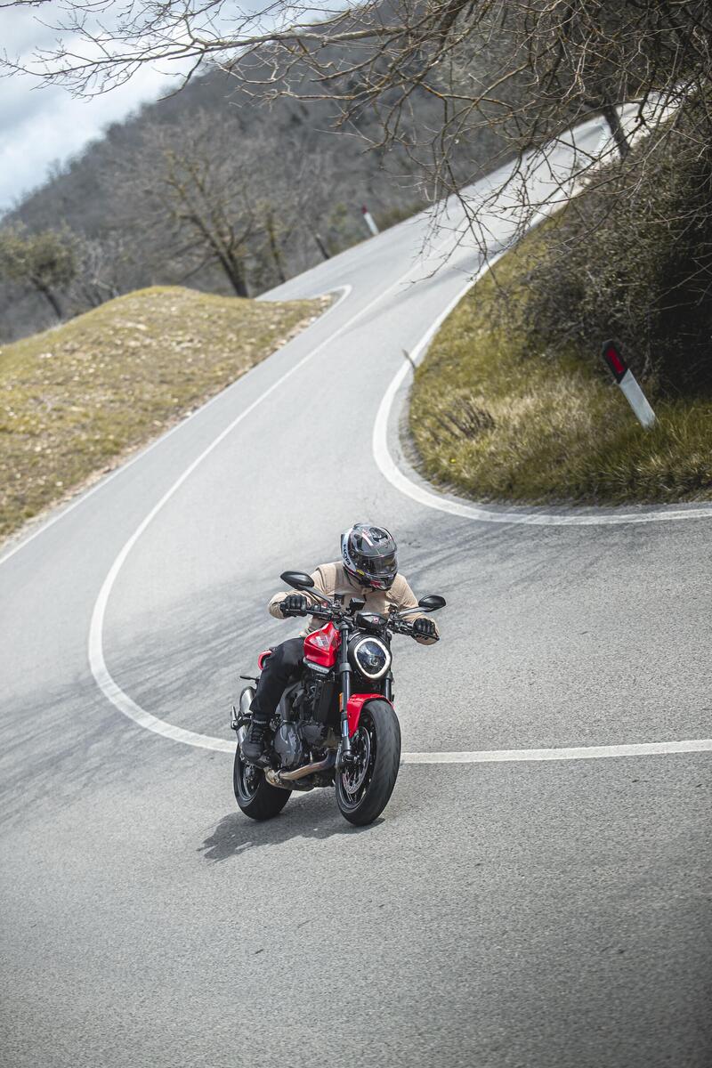 La personalità è rimasta quella già che ben conosciamo, con un’erogazione corposa, piacevolmente pronta e pulsante. Certo, la regolarità ai bassi non è da riferimento: con i riding mode più spinti qualche strappo “sotto” si sente; d’altra parte siamo su un Monster e un po’ di “ignoranza” è - e deve essere - parte del suo carattere. Poi, appena si supera la soglia d’impasse, il bicilindrico Ducati spinge con una schiena esilarante (complice un peso davvero ridotto ai minimi storici) regalando un gusto di guida davvero elevatissimo. La frizione è morbidissima, e il cambio (la trasmissione è la componente più aggiornata rispetto alle altre implementazioni del 937) è di una morbidezza e precisione da riferimento assolute.