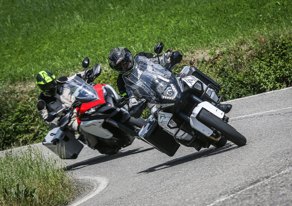 Come anticipato le moto del nostro test sono vere ammiraglie, progettate per viaggiare in grande sicurezza. Entrambe hanno una dotazione top: ride by wire e riding mode, sospensioni elettroniche, cornering ABS, cruise control, controllo di trazione e altro ancora che vi raccontiamo nel video e all’interno delle singole prove. La Multistrada costa 20.990 euro e ha di serie anche l’assistenza alla partenza in salita (optional sulla KTM). La versione del nostro test ha il pacchetto Touring, che comprende la borsa da manubrio, le manopole riscaldabili e le borse (al prezzo di 1.707 euro).
