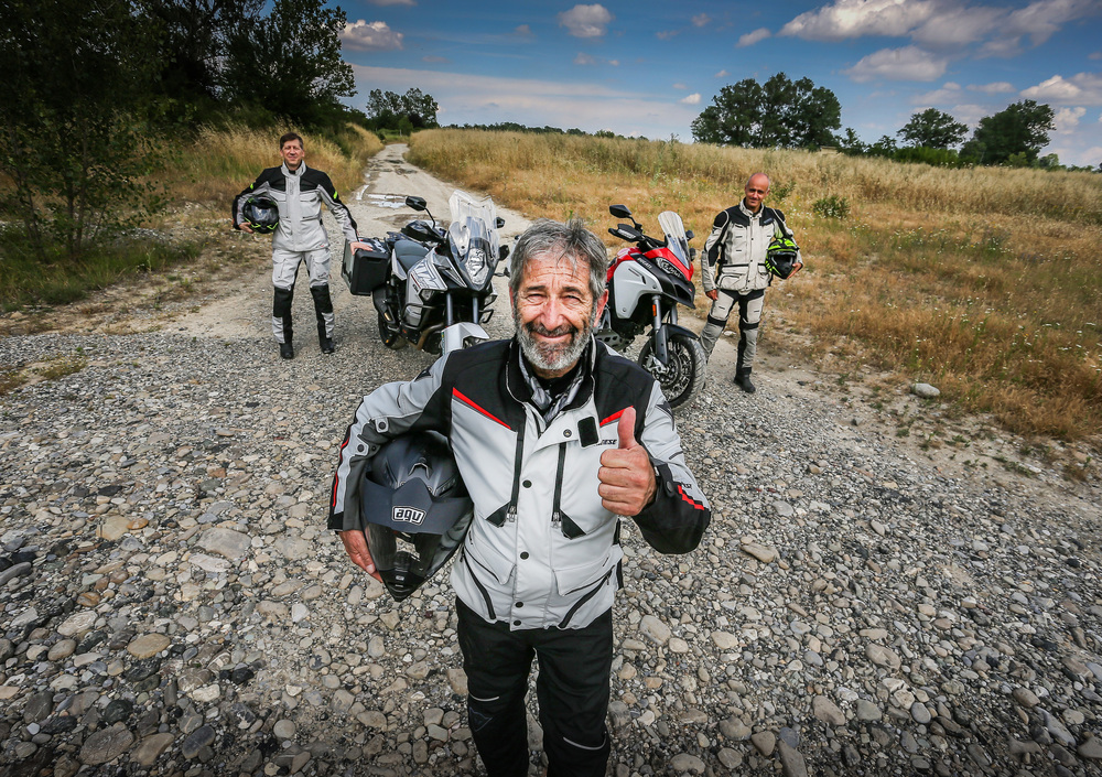 Ci aveva conquistato durante il lancio stampa in Sardegna, ma era dotata di gomme tassellate. Ora con le gomme stradali, ma su percorsi molto più semplici (fondo sassoso e sabbioso, a tratti bagnato), la Multi Enduro è andata davvero alla grande. Le sospensioni regolate su Enduro e il motore con la mappatura dedicata ne trasformano il carattere. In piedi si guida bene e sfoggia un’agilità che maschera il peso notevole della moto. La Ducati invita a giocare, persino coi controlli disinseriti, perché ha un telaio sincero e molto stabile. Con lei si può osare, certo. Ma rovinarla sarebbe un vero peccato, se non altro per quello che costa.