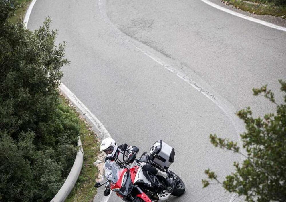 In manovra il peso si avverte - siamo a 260 kg e passa col pieno e le borse - ma in movimento la Rally ti conquista subito. L'abbiamo provata con le gomme semitassellate Pirelli Rally STR, che non tolgono nulla al piacere di piegare in sicurezza. Il motore è regolare ai bassi, pieno dai 4.000, una furia incontenibile dagli 8.000 fino alla potenza massima: 170 cavalli a 10.750 giri!
