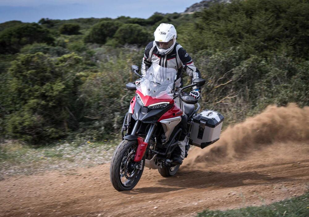 E in fuoristrada? Ecco, non è una moto da enduro e in più stenderla dovrebbe essere considerato un peccato capitale da quanto è costruita con cura. Però in mappa Enduro la potenza scende a 114 cavalli, le sospensioni diventano moribe e allora puoi andare un po' dove ti pare, grazie anche alla luce a terra di ben 235 mm.