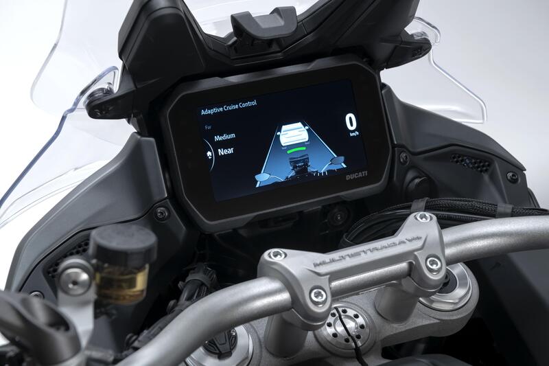 Con la Multistrada V4 Ducati introduce un’anteprima assoluta nel mondo delle moto: il rivoluzionario sistema radar anteriore e posteriore, che permette l’utilizzo del Cruise Control Adattivo (ACC) e del Blind Spot Detection (BSD). I radar sono dei sistemi di ausilio avanzato che Ducati ha sviluppato assieme a Bosch.