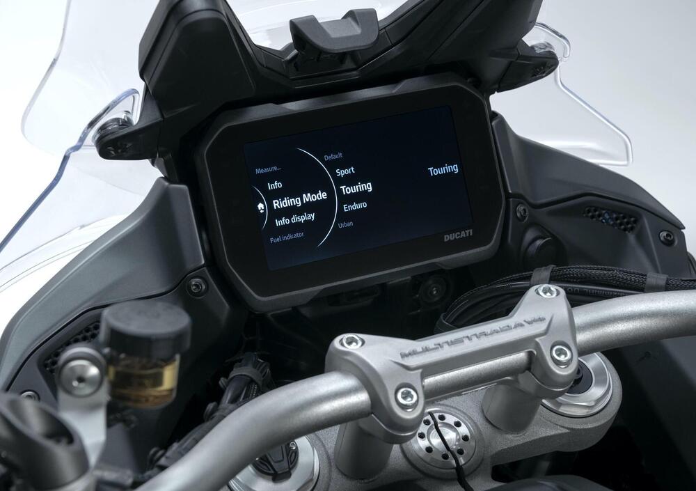 La Multistrada V4 è dotata di un cruscotto TFT da 5 pollici. La navigazione nel menù è facile e resa intuitiva da grafiche che identificano immediatamente il settaggio che si sta andando a modificare. Grazie al modulo Bluetooth è possibile utilizzare il Ducati Multimedia System (DMS) che permette di rispondere alle telefonate oppure ascoltare la propria musica preferita.