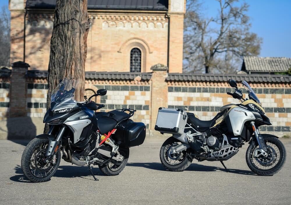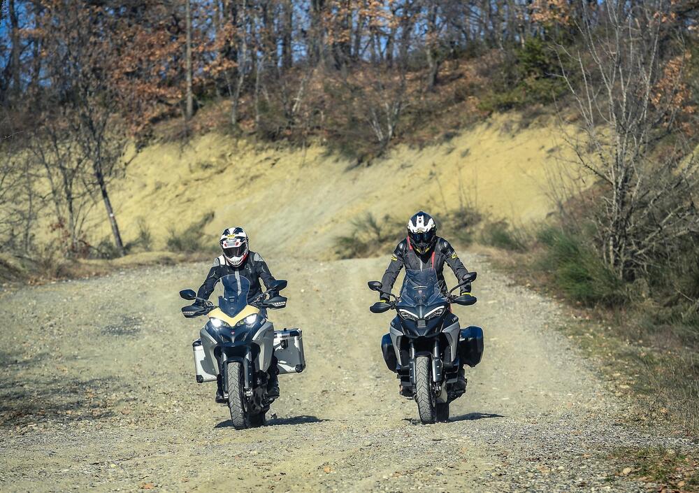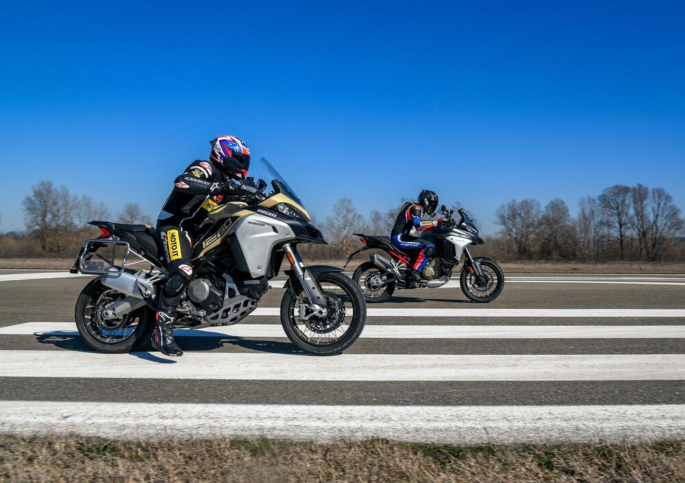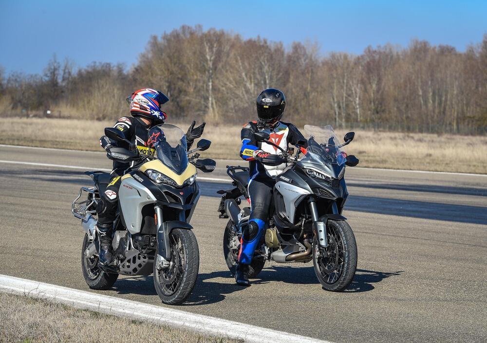 V4 contro Desmo bicilindrico. Telaio monoscocca in alluminio contro traliccio in acciaio. Sono i temi caldi dello scorso inverno, quando Ducati ha introdotto sul mercato la nuova Multistrada V4. Per rispondere alle vostre domande, ma anche alla nostra curiosità, abbiamo messo a confronto la nuova V4 in versione S con cerchi a raggi e la Multistrada 1260 Enduro. Le abbiamo provate in città, in autostrada, nel misto. Ma anche in fuoristrada e persino nella pista degli aerei.