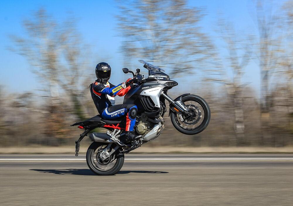 E’ molto agile e maneggevole. Nel misto risulta facile e il motore aiuta. Va però usato in modalità Enduro con 115 cavalli. A potenza libera diventa difficile gestirla in fuoristrada. Attenzione alle cadute, perché il rischio di fare danni c’è. E sarebbe un peccato su una moto sportiva da viaggio così curata. Se però volete osare, sappiate che la V4 in fuoristrada ci va. E lo fa pure bene!