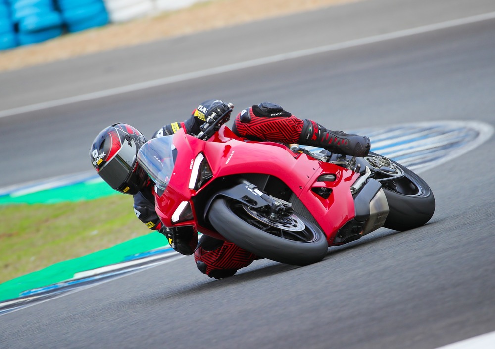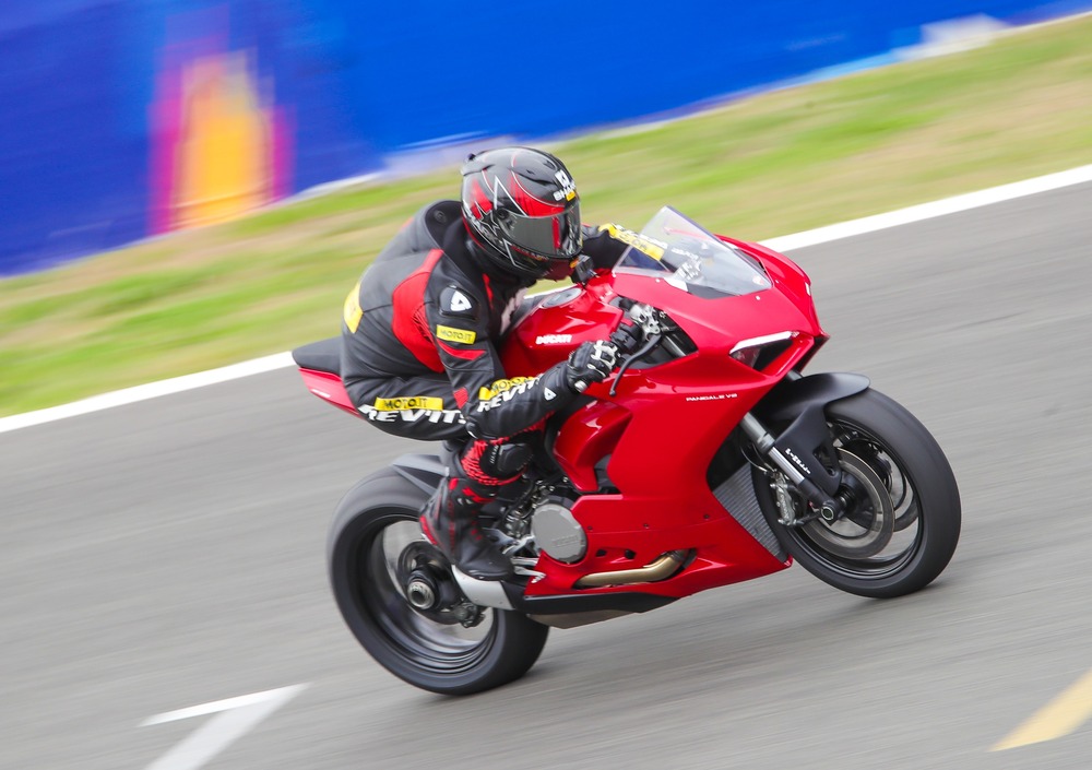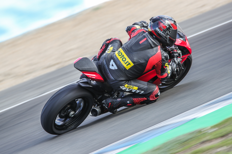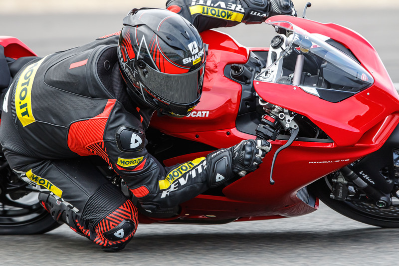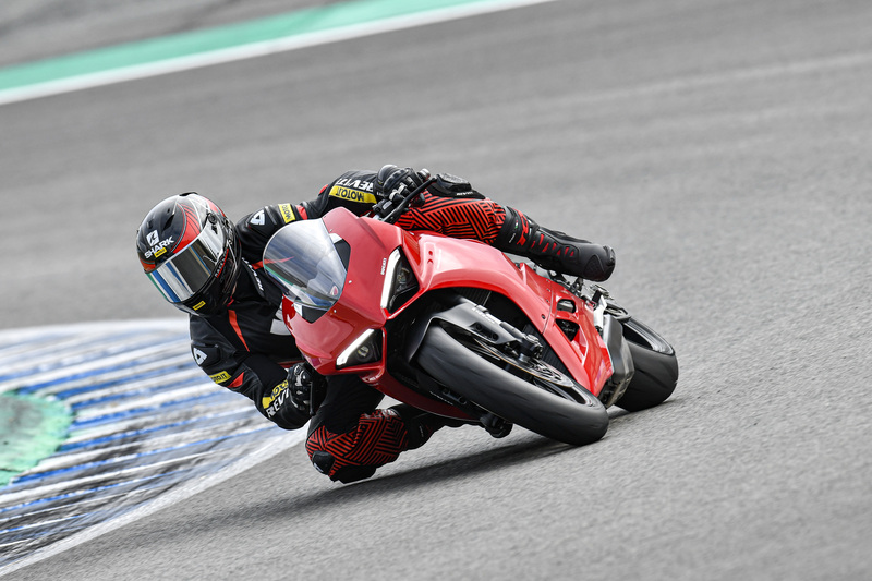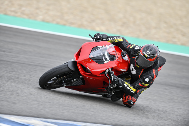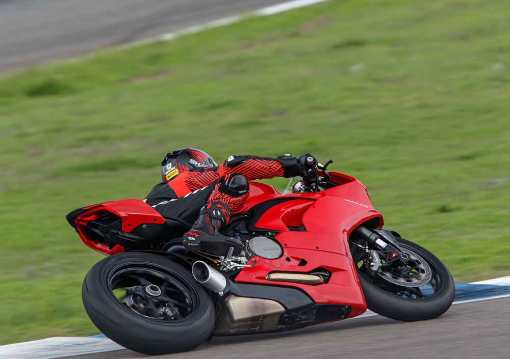 Le condizioni meteo variabili ci suggeriscono di portare a casa quanto più materiale possibile sin da subito, e in questo la nuova personalità della “V2” ci viene incontro. Che sia facile e intuitiva, pur mantenendo quel DNA Ducati imprescindibile per chi compra una moto costruita a Borgo Panigale. Abituati alle superpotenze delle mille, i 155 cv della “V2” sono un toccasana per lo spirito e per il corpo, nel senso che ci si trova a dare il gas senza tanti patemi e le spinte a cui viene sottoposto il corpo non sono di quelle che ti fanno collassare un polmone nel giro di un solo turno. Con la bicilindrica si riesce a mantenere un ritmo costante dall’inizio alla fine e la sensazione di dare tutto il gas e percepire il fondo corsa della manopola è una sensazione di quelle che ti fa sentire “protagonista” della guida, e non in balìa della moto come può accadere in sella alle mille più performanti anche solo dopo pochi giri tirati. Non fatichiamo ad affermare che questa sensazione si può amplificare ulteriormente nell’utilizzo su strada, dove i duecento cavalli vengono azzoppati da una manopola del gas che si può spalancare poco o nulla.