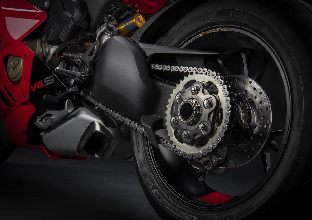 Diversa anche la rapportatura del cambio, che si adegua a quella utilizzata dalla V4R utilizzata nel Mondiale SBK allungando prima (+11,6%), seconda (+5,6%) e sesta (+1,8%) migliorando così le prestazioni in accelerazione nelle ripartenze dalle curve più strette (il quickshifter DQS può tra l’altro ridurre i tempi di “taglio”, vista la maggior vicinanza fra i due rapporti), riducendo il freno motore indesiderato e aumentando la velocità massima grazie anche all’aumento di potenza massima e di efficacia da parte del pacchetto aerodinamico.