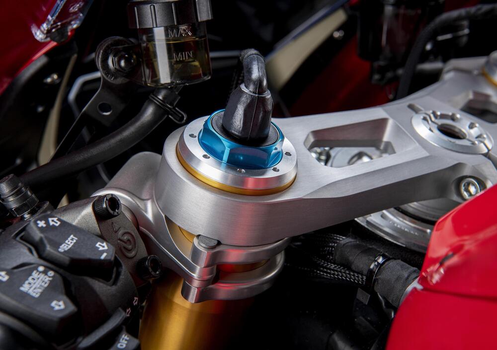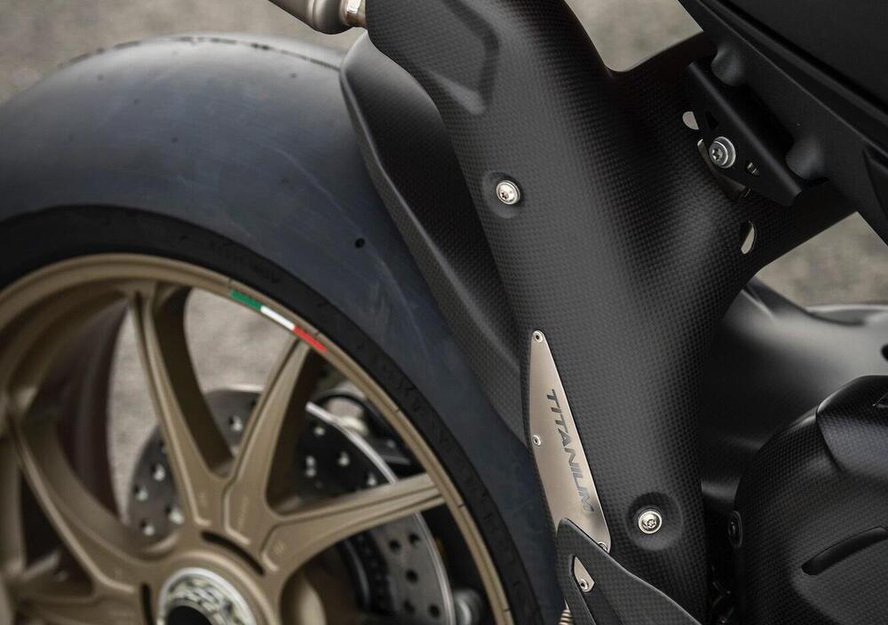 Invariato il monoammortizzatore - un Öhlins TTX 36 - così come l’impianto frenante Brembo, con pinze monoblocco Stylema e dischi da 330 mm, nonché i cerchi forgiati a tre razze (sulla V4S) che calzano pneumatici Pirelli Diablo Supercorsa SP v3 nelle misure 120/70 ZR17 anteriore e 200/60 ZR 17 posteriore.