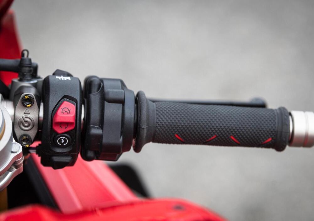 La dotazione di controlli è di fatto invariata rispetto al modello 2021 - al netto, naturalmente, delle calibrazioni di ogni controllo per adattarli alle caratteristiche della nuova Panigale V4 - e prevede ABS Cornering Evo (tre livelli d’intervento, con il 2 che ammette lo slide-by-brake in ingresso curva e l’1 che agisce solo sull’anteriore pur mantenendo la funzionalità cornering), traction control DTC EVO 3 (otto livelli di intervento, con il già citato sistema di recupero dei giochi meccanici), slide control DSC (due livelli), controllo impennata DWC EVO (tre livelli), launch control DPL (tre livelli), quickshifter bidirezionale DQS EVO 2, gestione freno motore EBC EVO, e appunto controllo sospensioni elettroniche DES EVO, che permette di operare sia in modalità manuale, ovvero simulando i “clic” delle sospensioni meccaniche, che in semiattiva, con il sistema che modifica le tarature dell’idraulica in tempo reale sulla base dello stile di guida secondo i desideri del pilota impostati attraverso l’interfaccia OOBTi.