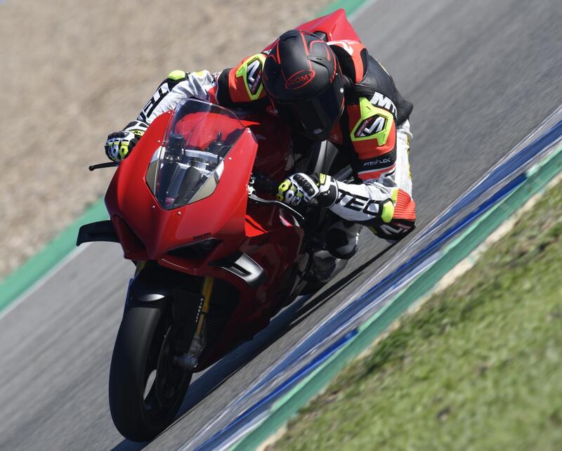 Di primo acchito, la posizione in sella sembra la stessa - geniale nella sua coniugazione di accoglienza e capacità di assecondare i movimenti della guida di corpo - dei modelli precedenti. Solo facendo bene mente locale pare di cogliere un’altezza marginalmente ridotta, ma basta comunque uscire dalla pitlane per avere immediatamente la misura del cambiamento affrontato dalla Panigale V4: alla prima staccata decisa, le gambe stringono bene il serbatoio, semplificando notevolmente il lavoro delle braccia.