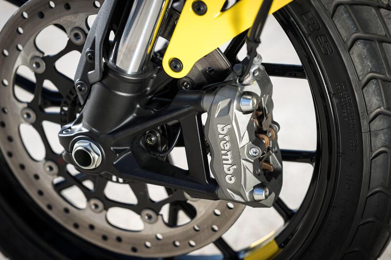 Azzeccato il comportamento dei freni: a prova di “panic stop” il freno anteriore – c'è sempre l'ABS per le situazioni di emergenza – ma se lo si strizza con forza ferma la Scrambler in brevi spazi e molto a punto quello posteriore dalla buona potenza unita a una eccellente modulabilità.